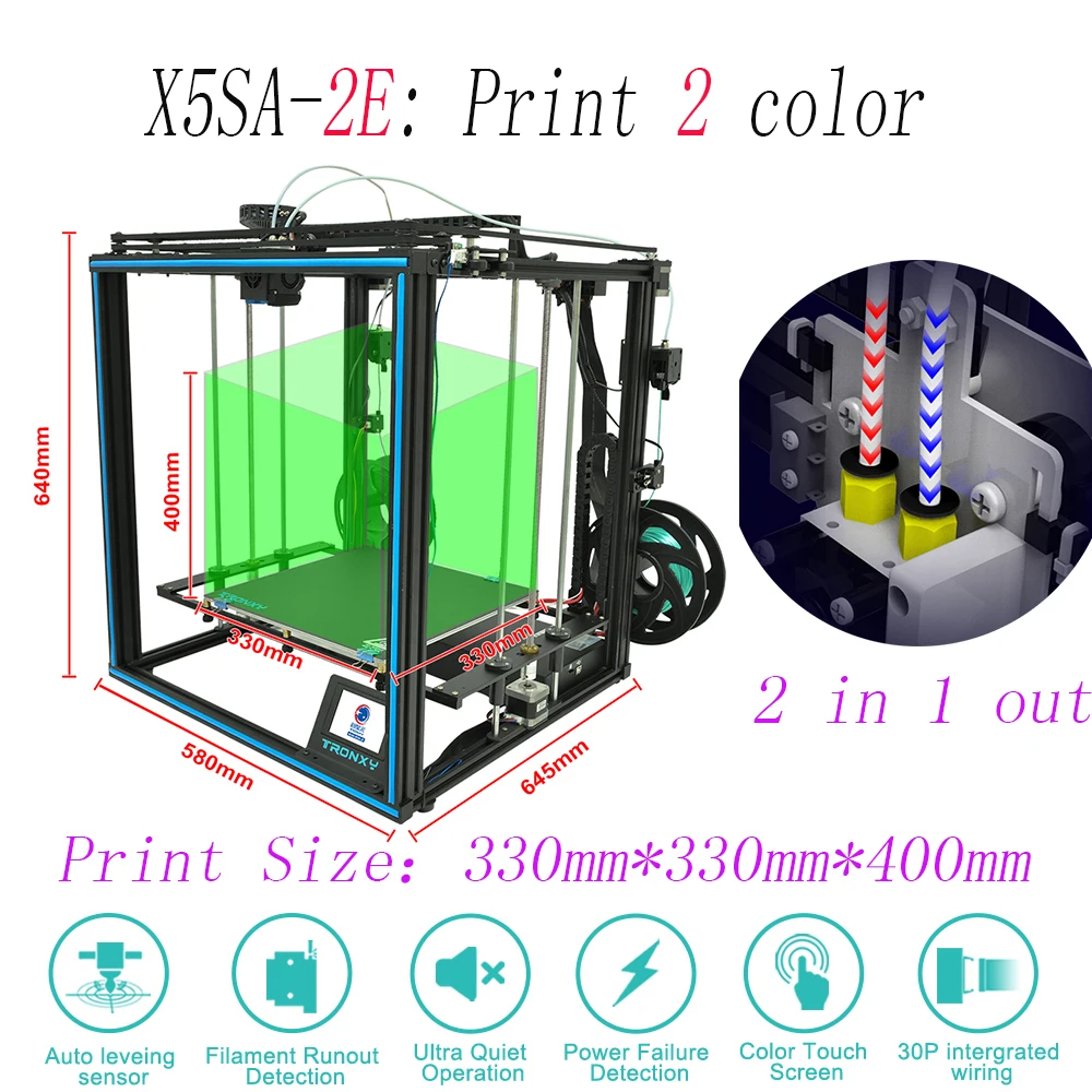 Можно напечатать два цвета одновременно Размер печатной модели: 330 мм * 330 мм * 400 мм