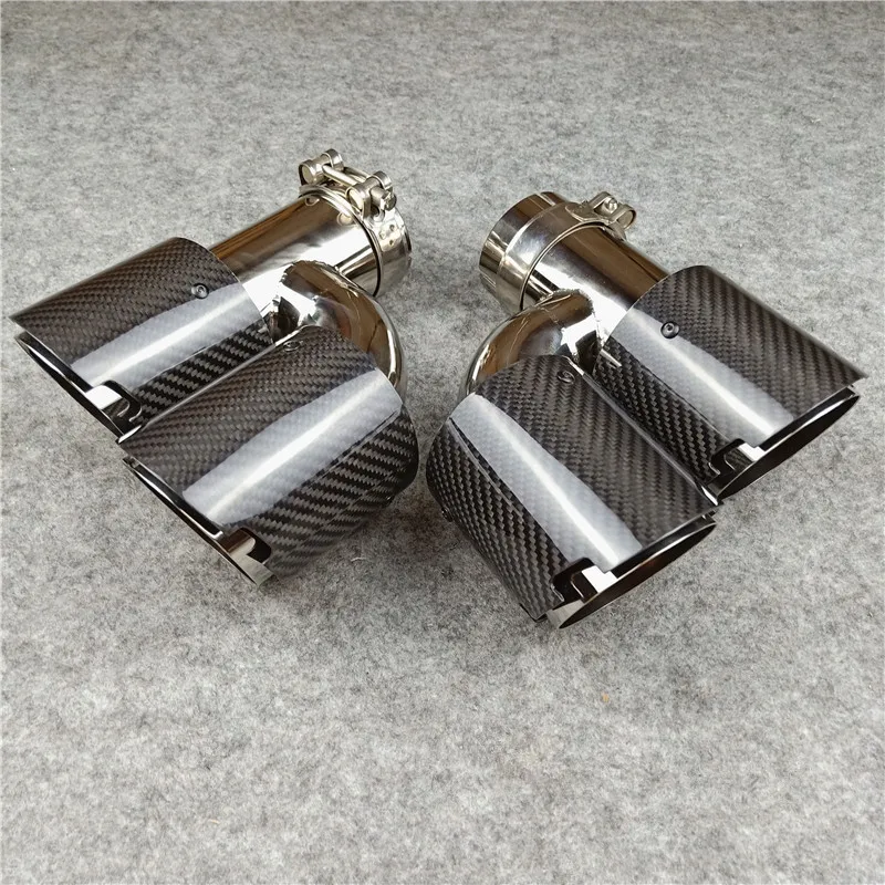 Одна пара H стиль глянцевое углеродное волокно выматывает Двойные наконечники, 304 нержавеющая сталь углеродный выхлопной Хвост двойной конец трубы