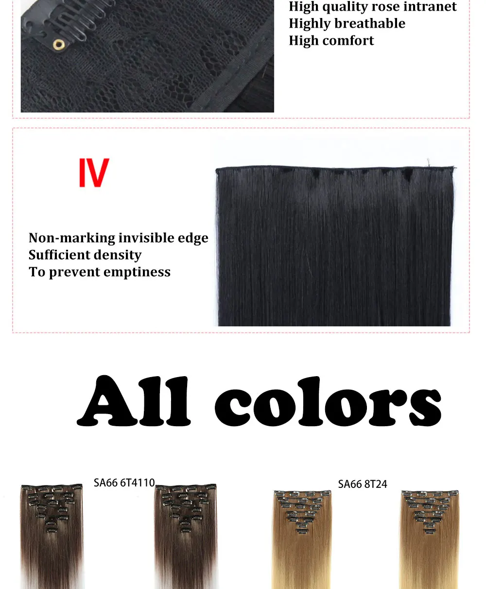 Название продукта: 16 шт. волос для наращивания Размер: 22 дюйма = 56 см Вес: 130 г Цвет: разные цвета s доступны для покупки, и предоставляется Настройка цвета (но количество больше) Качество: с использованием синтетического высокотемпературного Шелкового волоса, шелк мягкий, не запутанный и можно мыть. ★★★★★ Поскольку личный дисплей яркий, а контрастный дисплей отличается, может быть небольшая разница в цвете между изображением и фактическим предметом