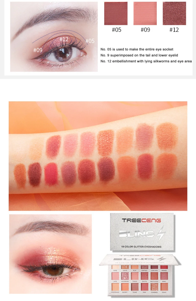 Цвет теней для век прочный, подходит для свиданий, плавания и покупок. Это нелегко изменить из-за эффекта кожного сала и пота.