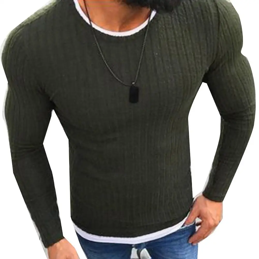 Мужской зимний однотонный трикотажный пуловер с круглым вырезом и длинными рукавами, тонкий свитер