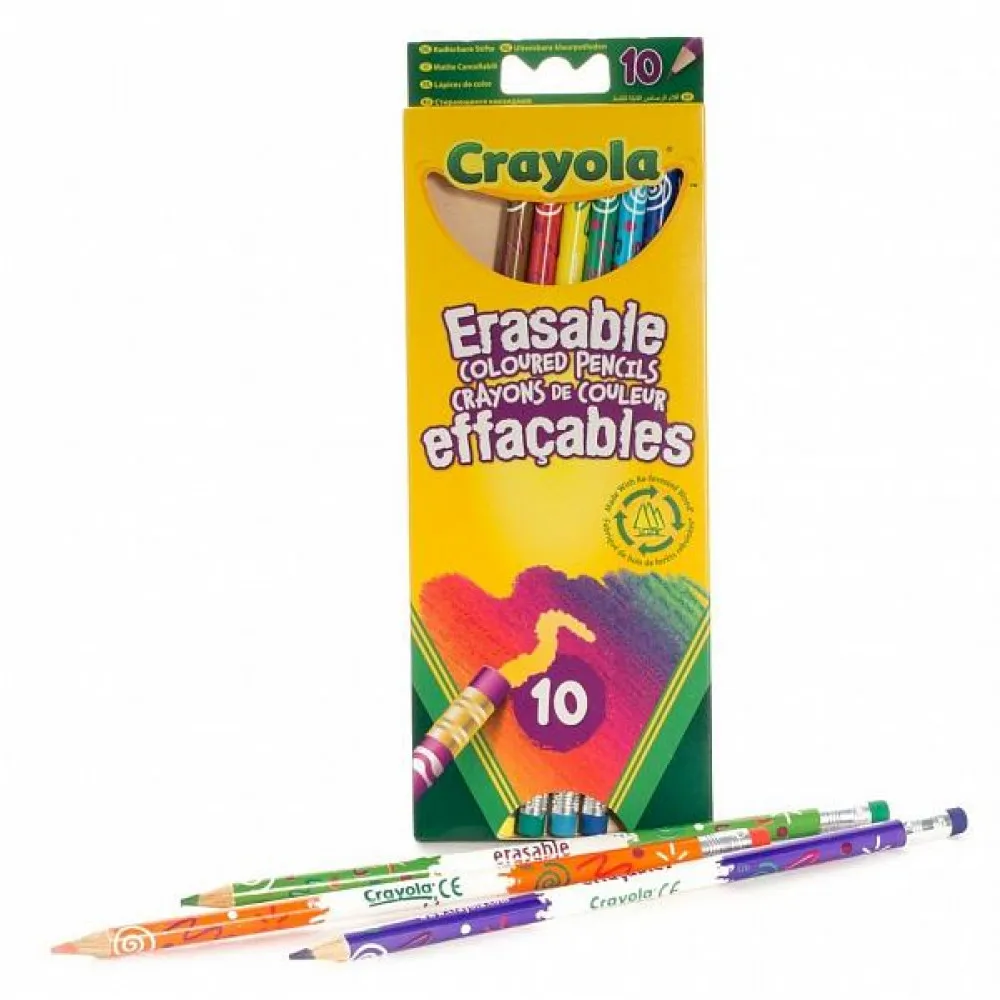 Создатели Crayola сделали умные карандаши со специальными стирательными резинками на кончиках именно тех цветов, что и сам карандаш. Ластик позволяет с легкостью устранить все дефекты рисунка без лишних хлопот и прочих неприятностей. Эти карандаши точно пригодятся Вашему ребенку, особенно для уроков рисования в школе.