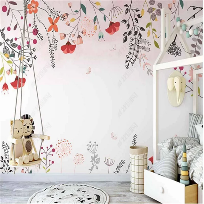 Скандинавские расписанные вручную пасторальные фоновые обои для спальни маленькие свежие цветы Гостиная фрески обои 3d домашний декор