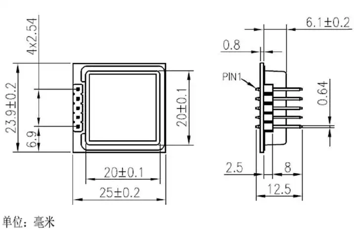 Size: 23.9× 25.0× 7.0 mm3