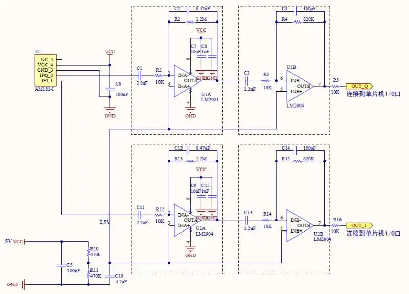 AM182 is a low-cost 24GHz band dual-channel radar transceiver, using a planar microstrip antenna structure, beam Angle of 80°×34°, with independent transmitting and receiving channels, as well as orthogonal if output, mainly used for close range target speed, motion direction information detection.