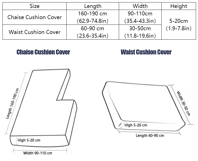 Обратите внимание, что подходящие размеры следующих продуктов относятся к размерам дивана, а не к размерам продукта. Измерьте Размер дивана согласно рисунку ниже и выберите соответствующий продукт.