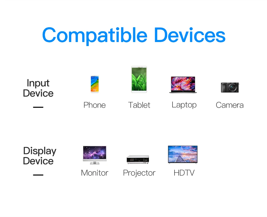 Высокоскоростные кабели 4K MICRO HDMI подключают планшет, ноутбук, цифровую камеру или видеокамеру к телевизору Ultra 4K (UHD TV), монитору или проектору с входом HDMI. Он позволяет вам играть в игры на большом экране HDTV дисплея или поделиться видео высокой четкости и цифровым аудио вместе с семьей и друзьями.