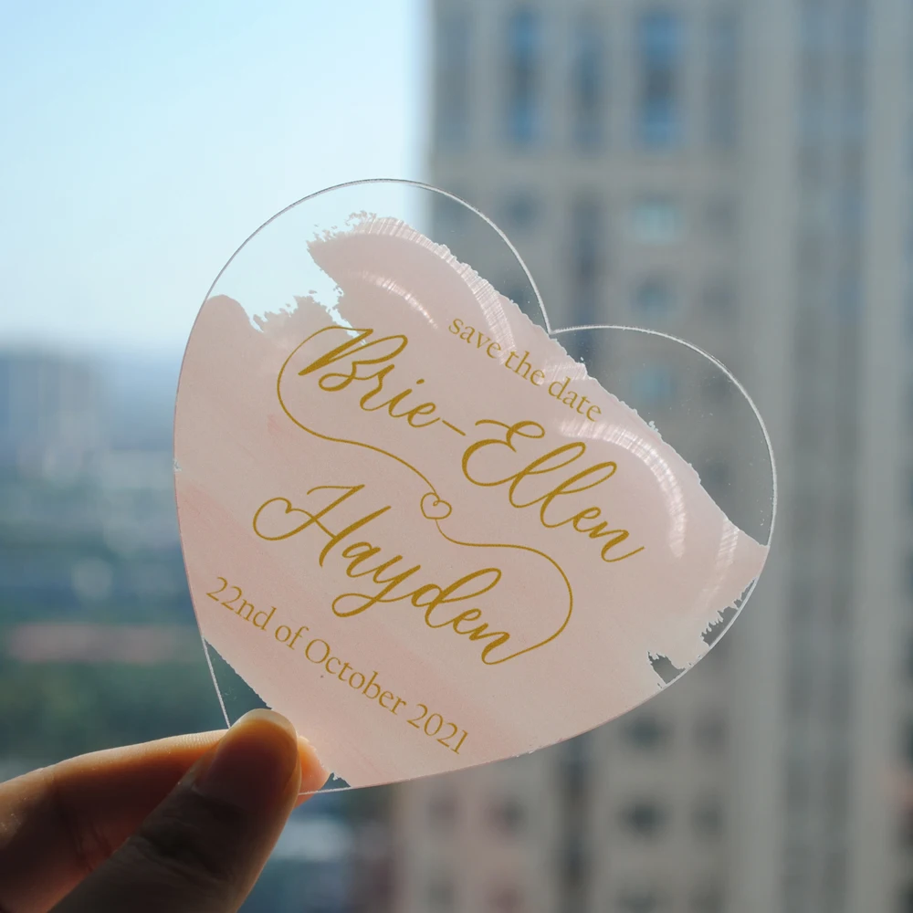 10 шт. Романтические свадебные открытки с сердечками на заказ с милым принтом из плексигласа лазерная резка свадебные приглашения по низкой цене