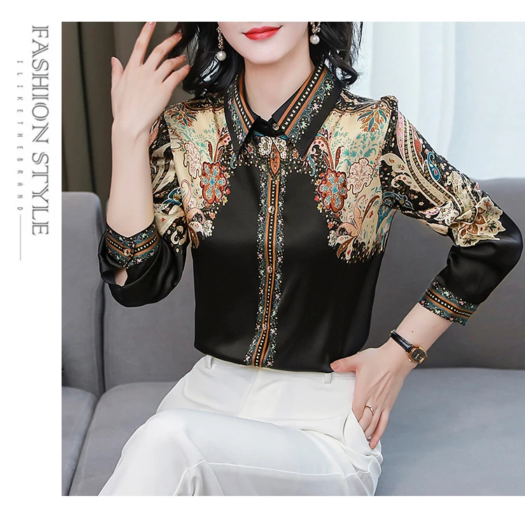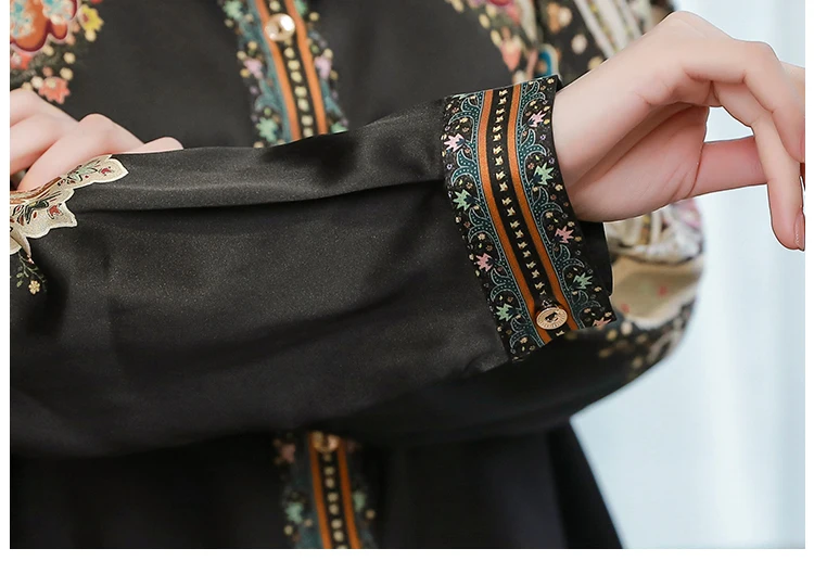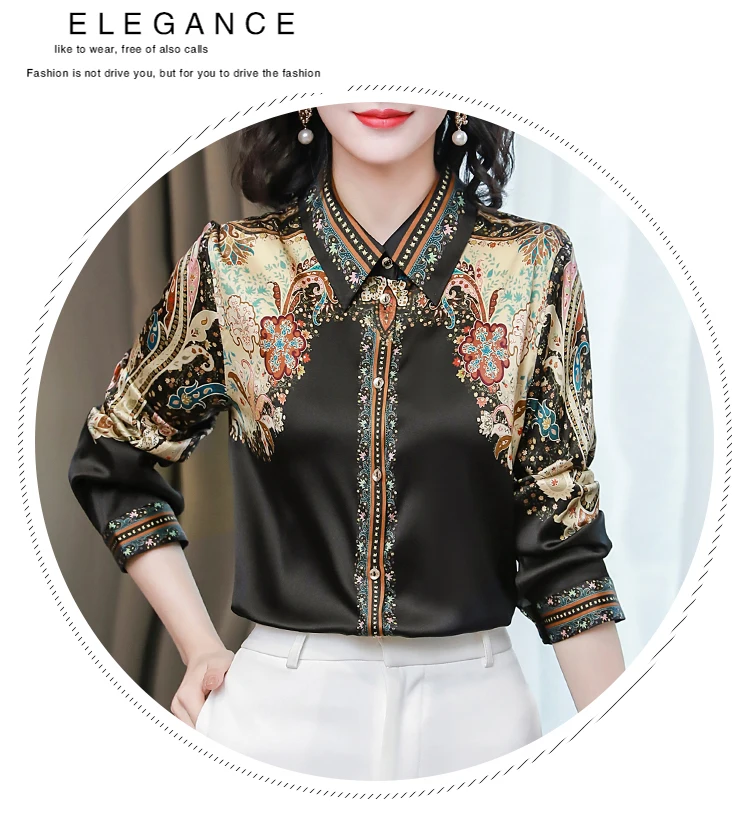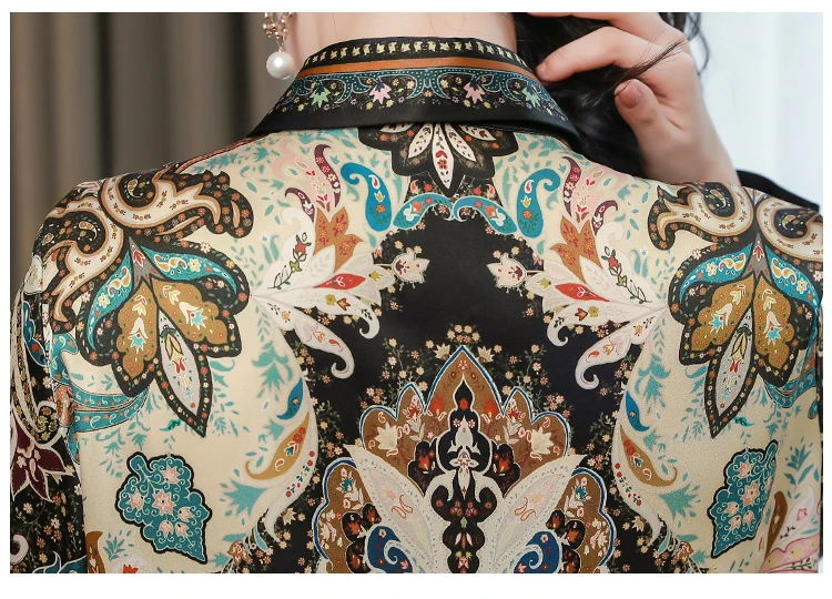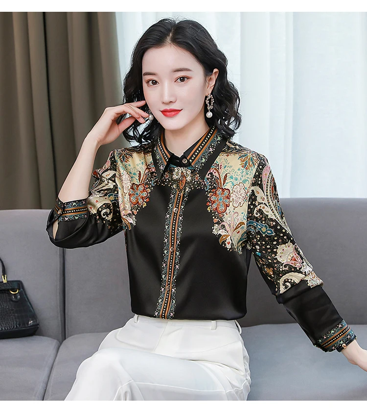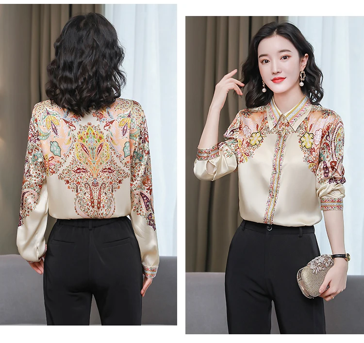 TingYiLi женские весенние винтажные шелковые блузки с цветочным рисунком Корейская элегантная офисная одежда рубашка на пуговицах Женские Ретро бежевые черные Топы XXXL