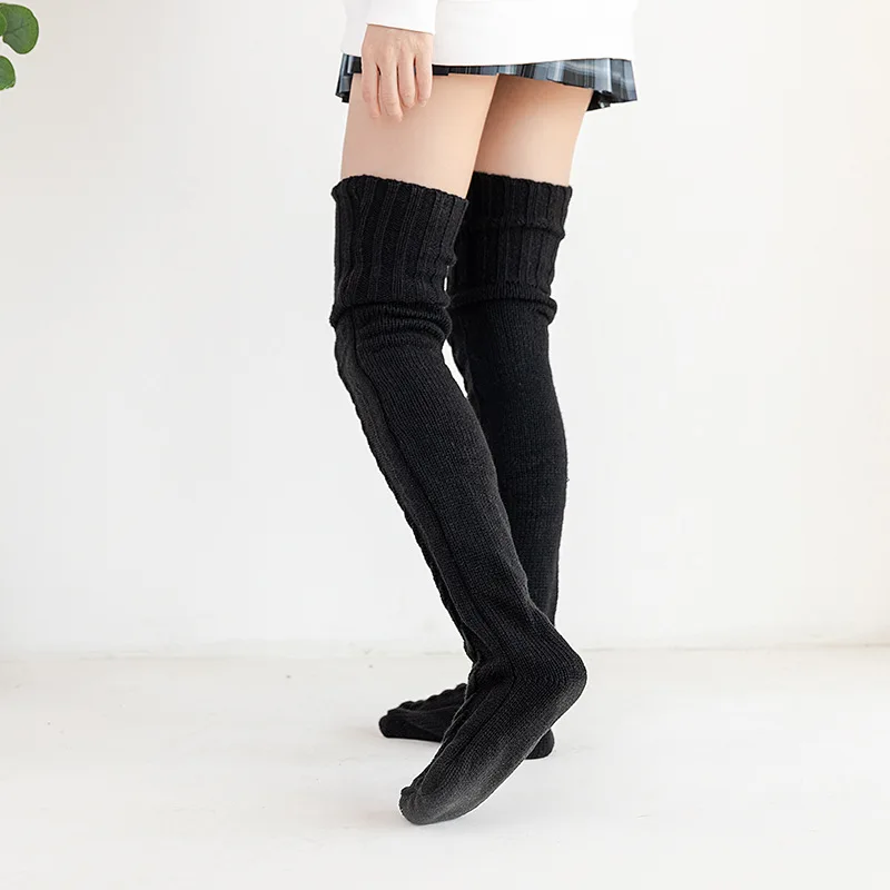Женские зимние плотные теплые носки с ворсом вязаные шерстяные Гольфы выше колена гольфы женские чулки для девочек 75 см