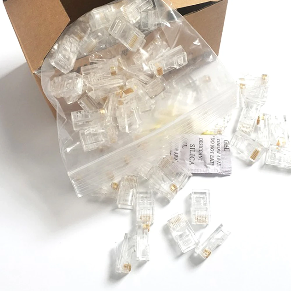 100PCS RJ45 8P8C CAT6 Crystal Head Modular Plug Gold Plated Network Connector Economic Wholesale Price
