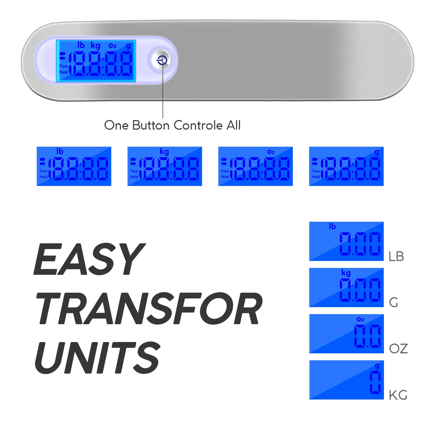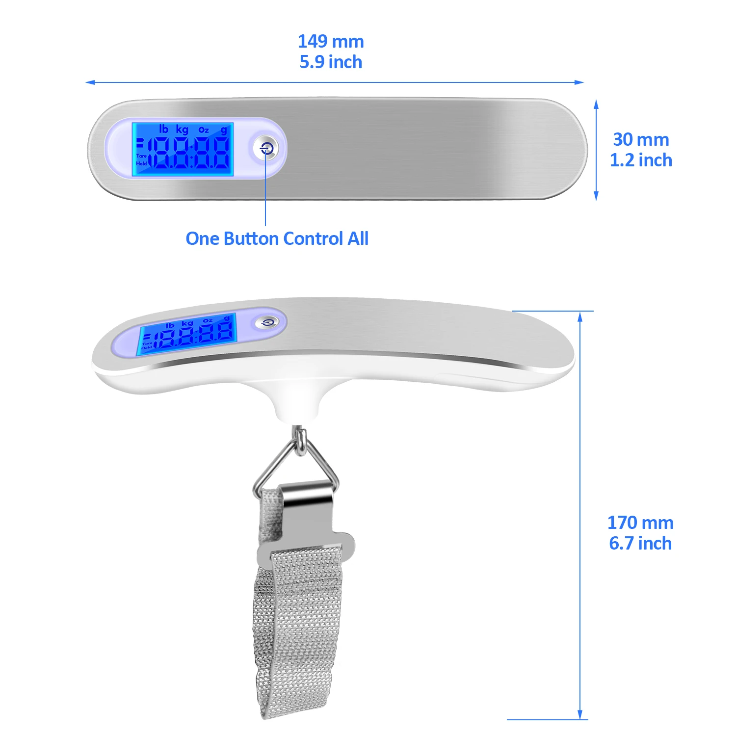 Технические характеристики Вес: 110 фунтов (50 кг) Функции шкалы: ноль, тара Единицы измерения: g/ oz/ kg/ lb Мощность: 1x3v литиевая батарея (CR2032) Посылка включает в себя 1x цифровые весы для багажа 1 батарея CR2032 1x Руководство пользователя