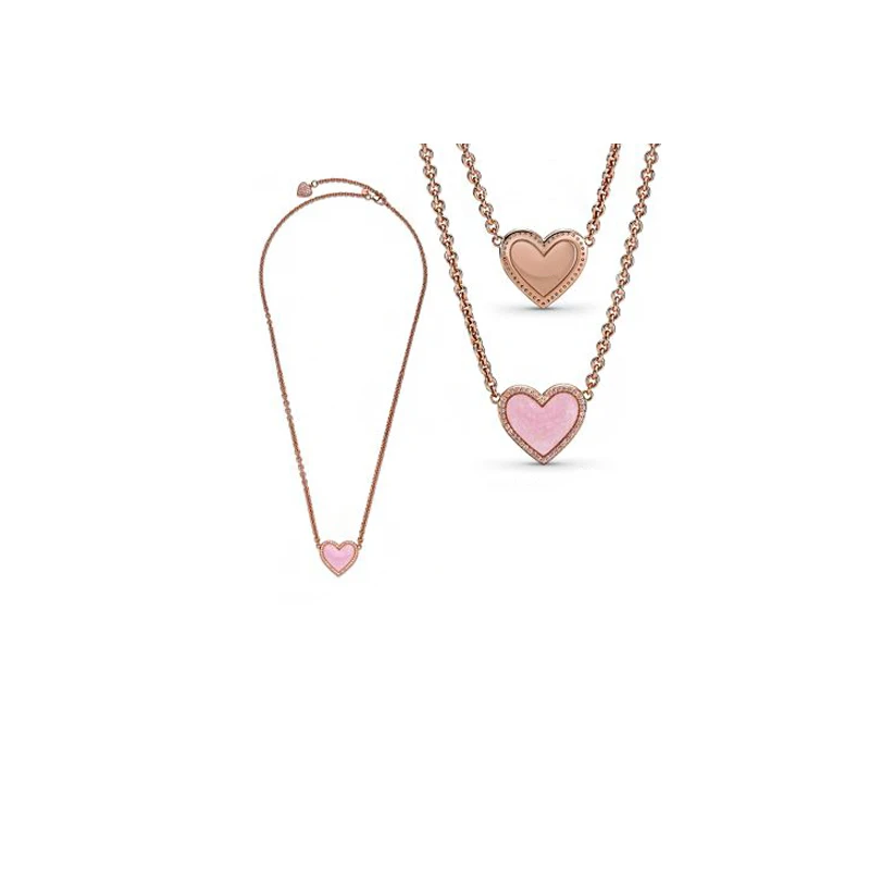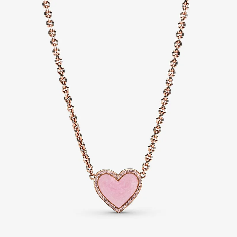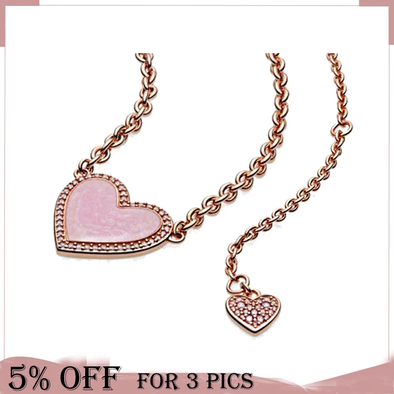 2021 День Святого Валентина Трендовое серебро 925 пробы розовое сердце ожерелье Кристальные ожерелья для женщин брендовые оригинальные модные ювелирные изделия