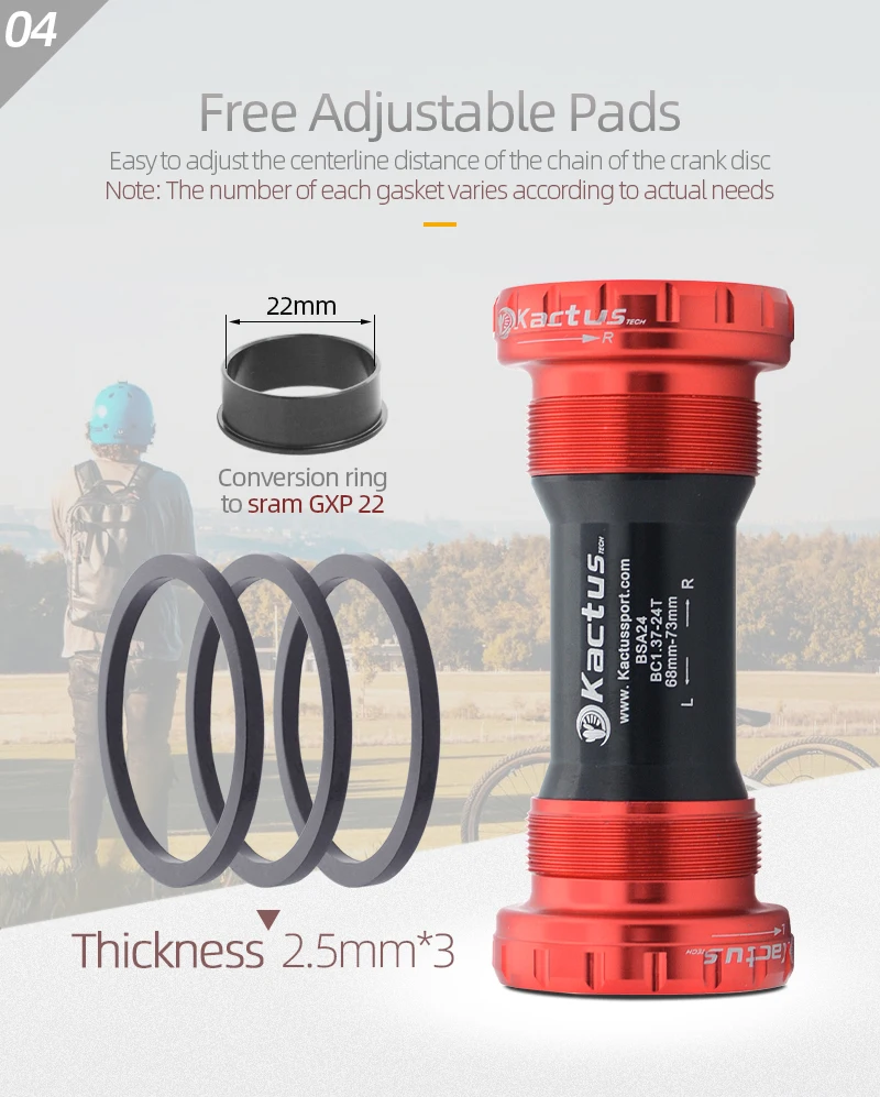 Подходит для:Shimano полный спектр коленчатых комплектов, SRAM GXP дорожный велосипед или MTB коленчатый набор, ротор 3D24,Aldhu24 коленчатый набор и другой бренд коленчатого набора с диаметром вала 24 мм.