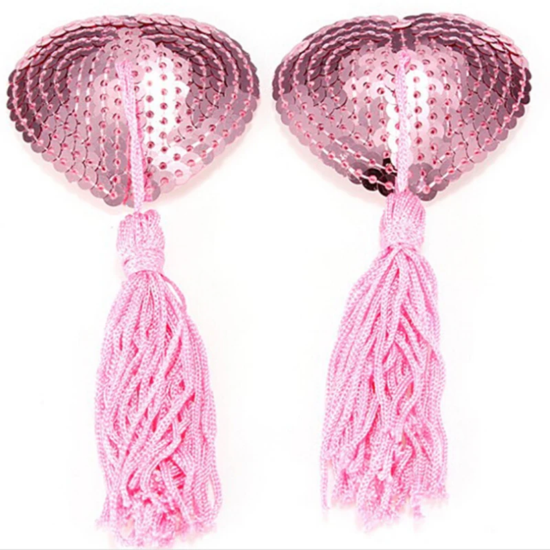 Парное самоклеящееся нижнее белье с блестками и кисточками, бюстгальтер с сердечками, чехол для соски, нагрудное белье