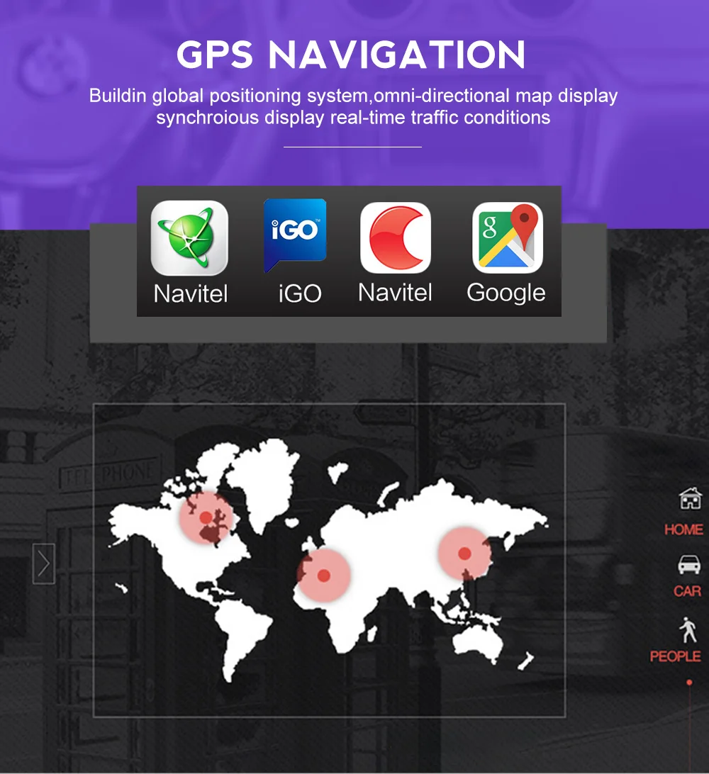 Поддержка Google maps online, i-Go, Navitel, Sygic, 3D maps и т. д.