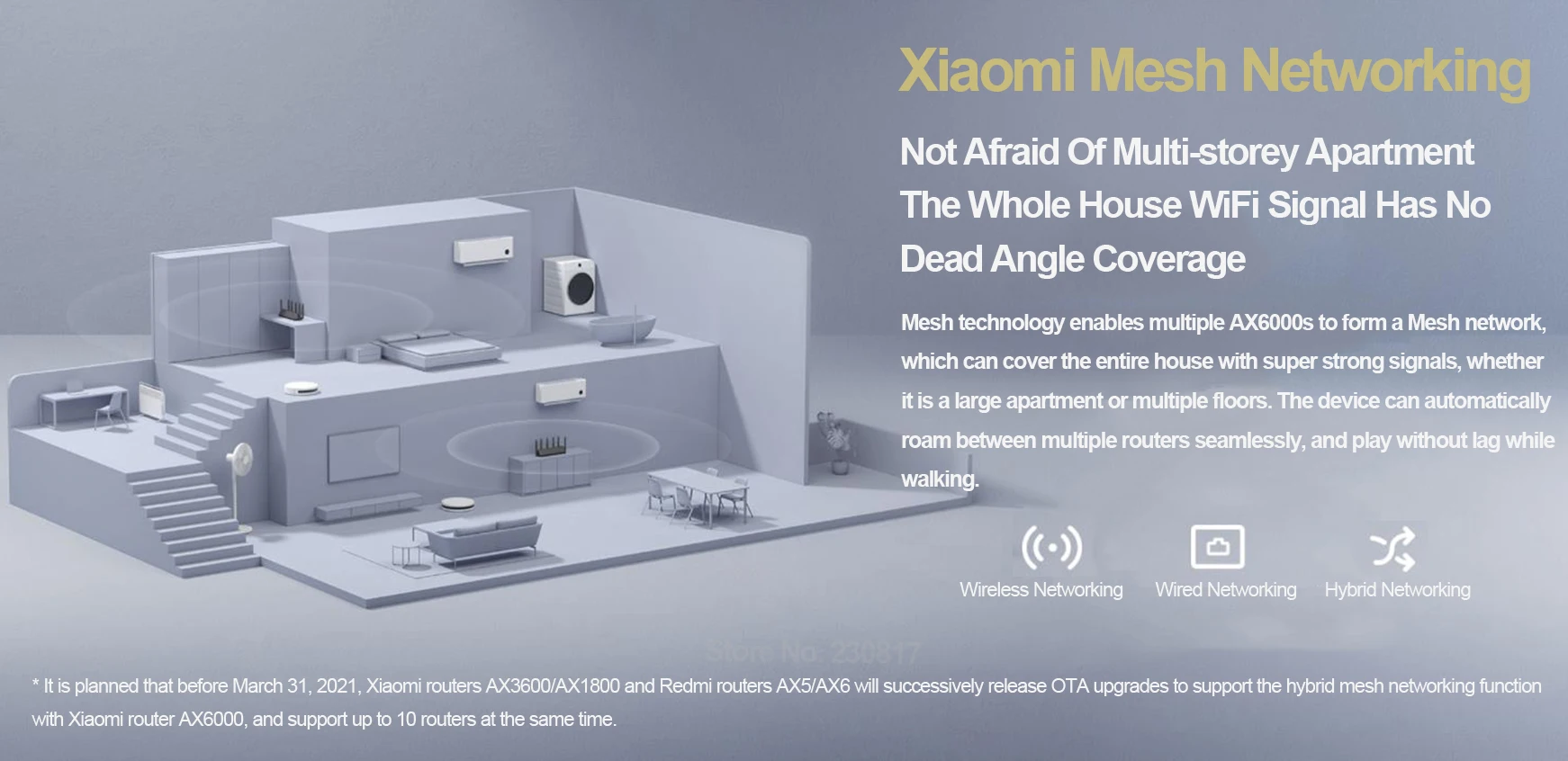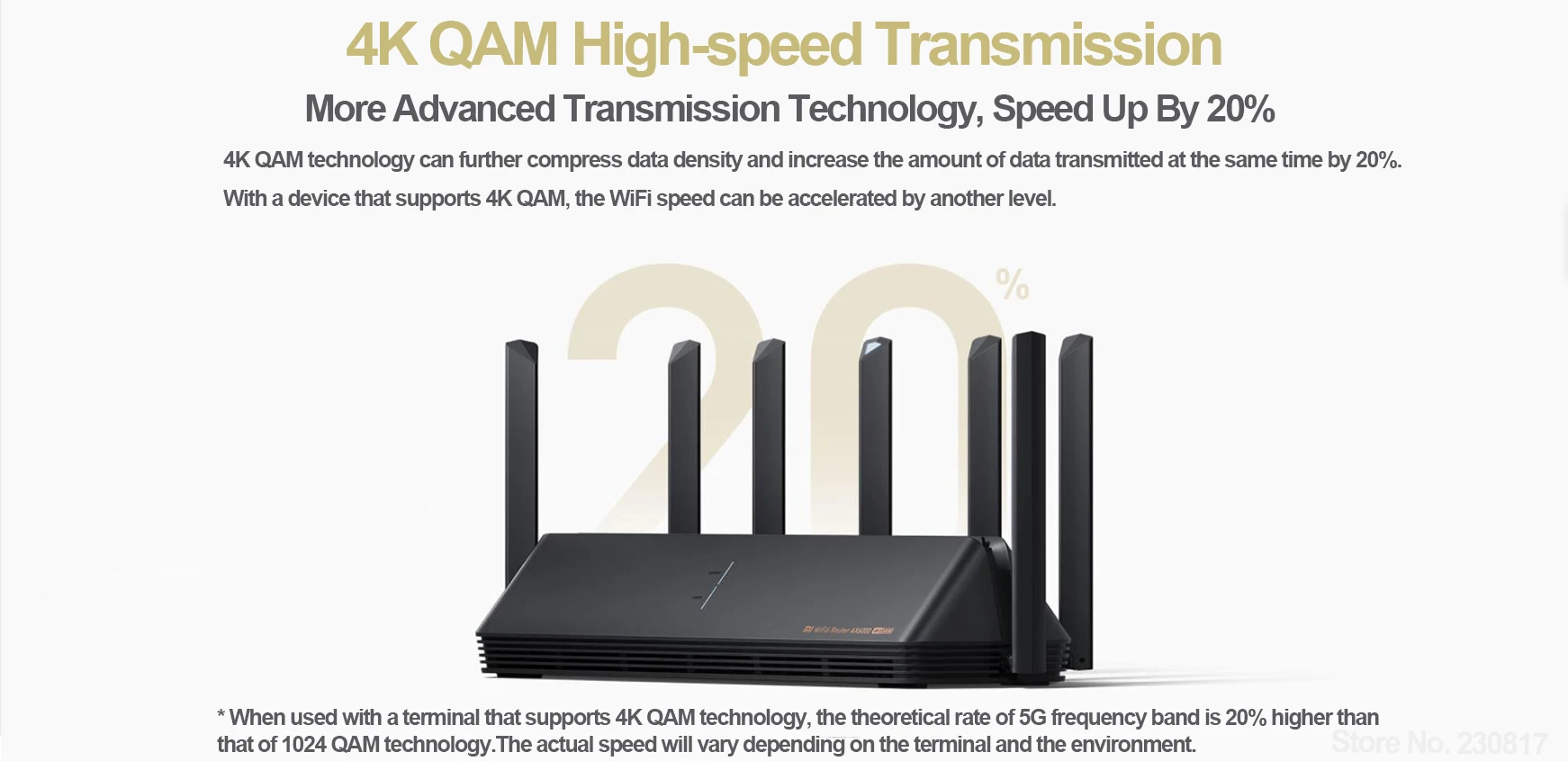 > 6000 м скорость беспроводной Спецификация уровень роутера, в том числе 2,4G Частотный диапазон скорости 574 Мбит/с, 5G Частотный диапазон скорости 4804 Мбит/с и AIoT антенна скорость