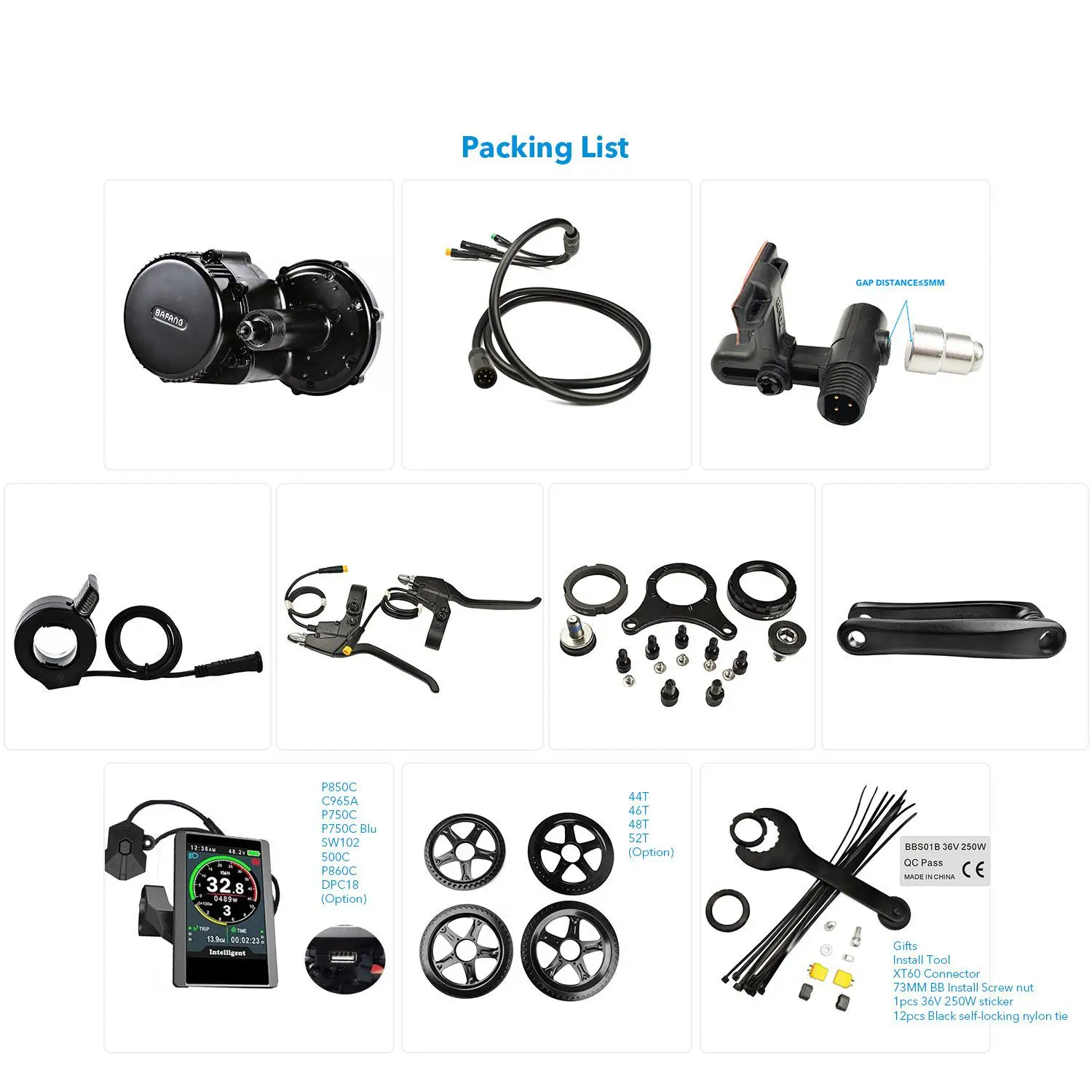Подарки: установка инструмента, Разъем XT60, 73 мм BB установка винта Гайка, 1 шт 36V 250W стикер, 12 шт Черный самоблокирующийся нейлоновый галстук.