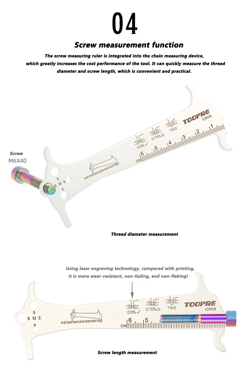 Назначение: измерение повреждения цепи, измерение длины, измерение диаметра винта, ремонт цепи