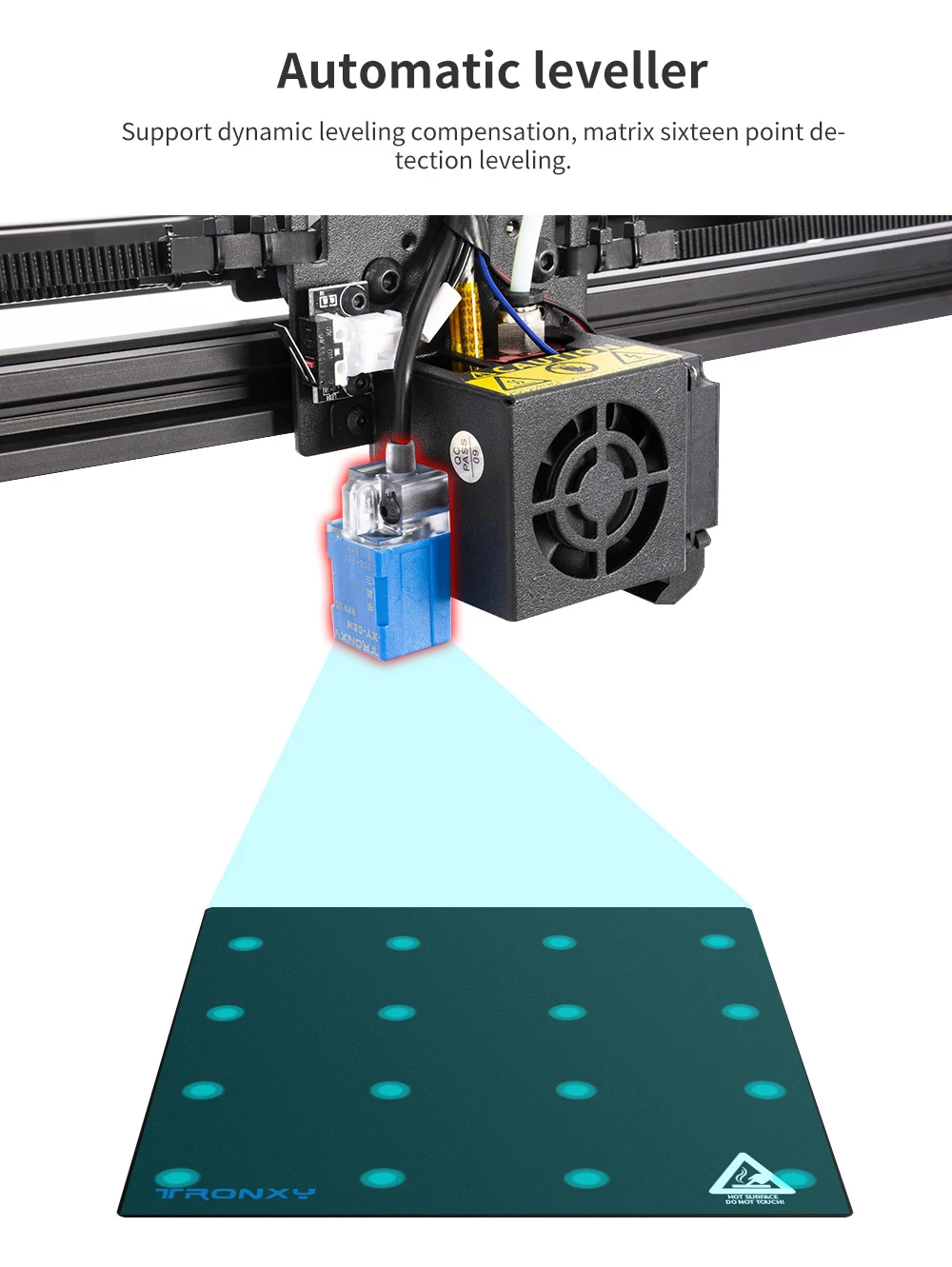 Зонд автоматически соберет 16 точек на горячей кровати. Для того, чтобы завершить автоматическое выравнивание более быстро. Устранение труда и времени ручного выравнивания.