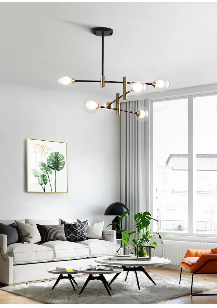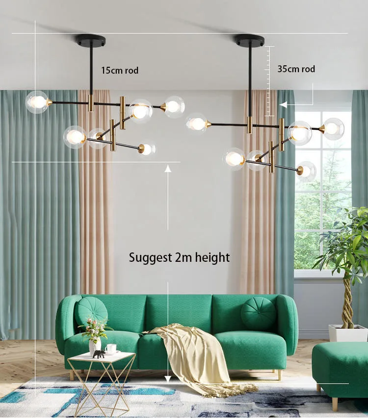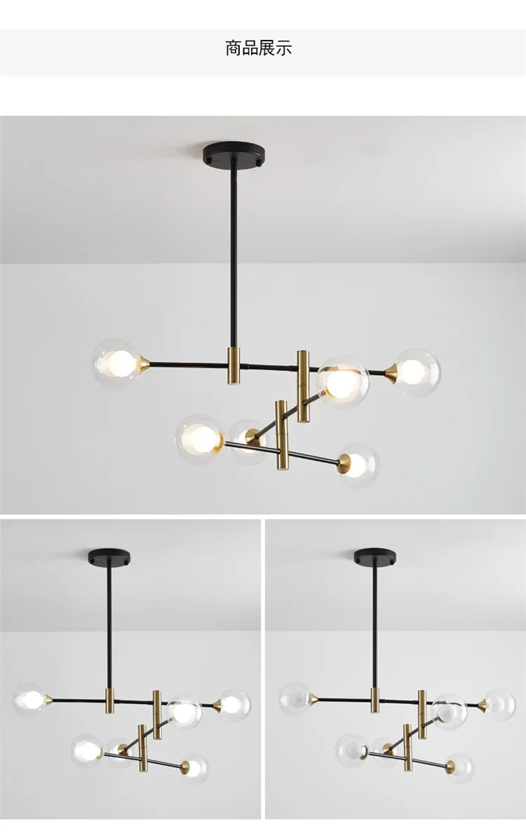 Kobuc Nordic Light Glass Ball Bubbles Chandelier Modern Iron Magic Bean Hanging Lamp Restaurant Bedroom Ceiling Chandelier Lamp