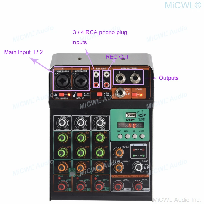 * Built in reverb effect, equalization regulate, by adjusting knob to adjust the reverb depth and delay effect