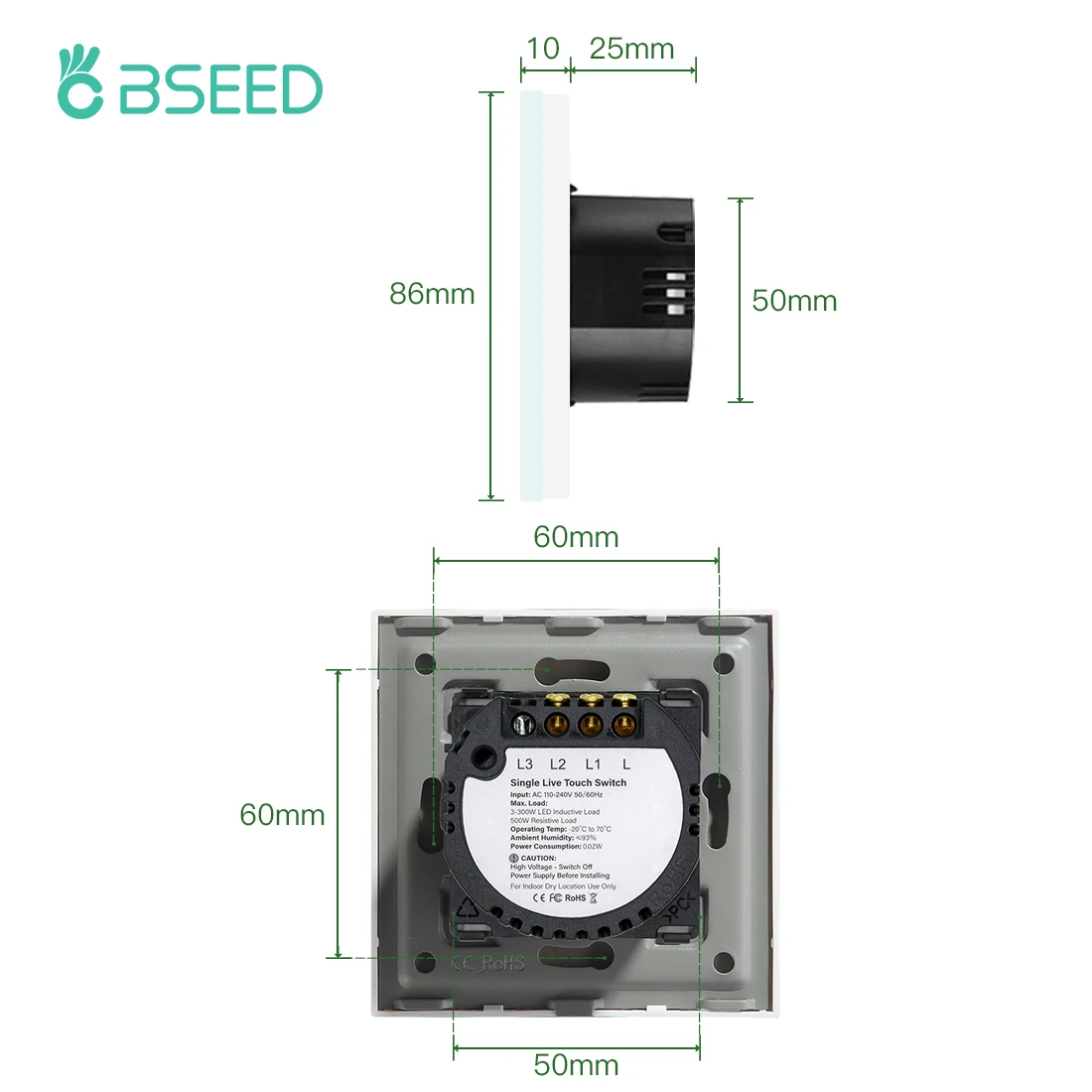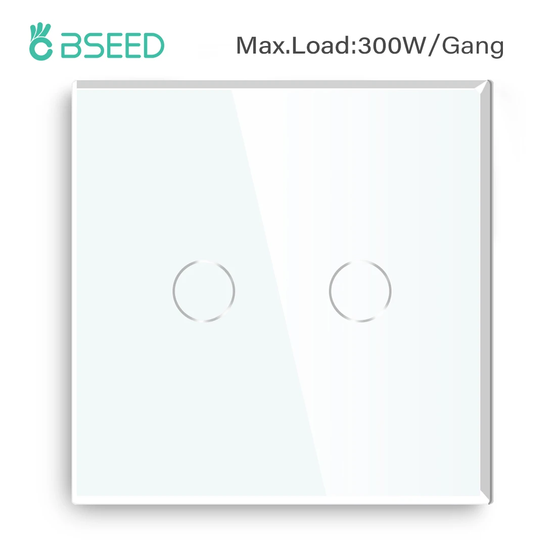 Сенсорный выключатель Bseed, стандарт ЕС, 2-канальный, 300 Вт, черный, белый, золотой, домашний выключатель света, одинарная линия под напряжением с кристальной стеклянной панелью