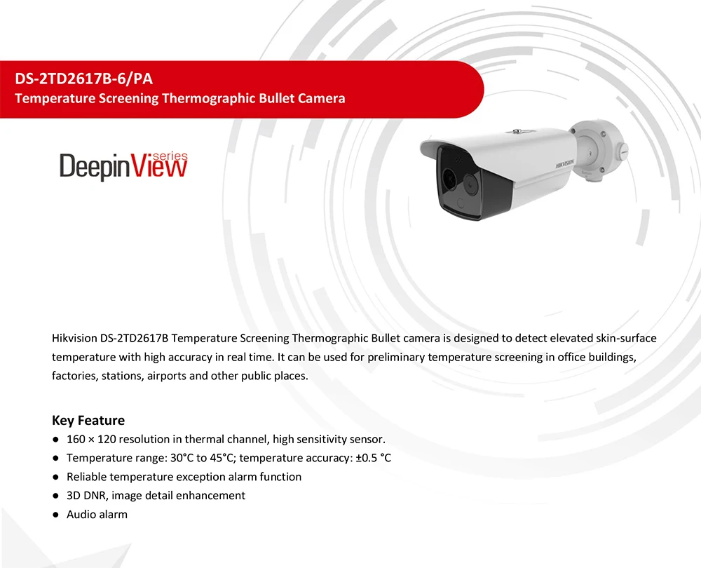 Hikvision Термографическая камера для измерения температуры тела DS-2TD2617B-6/PA Поддержка звуковой сигнализации