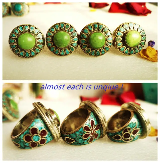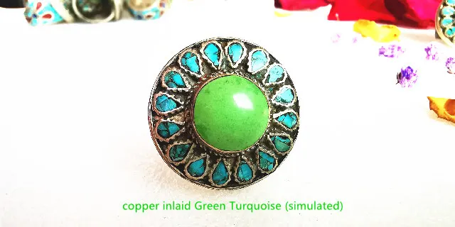 ----Белый металл медь инкрустированная бирюзой кольцо в форме большого цветка