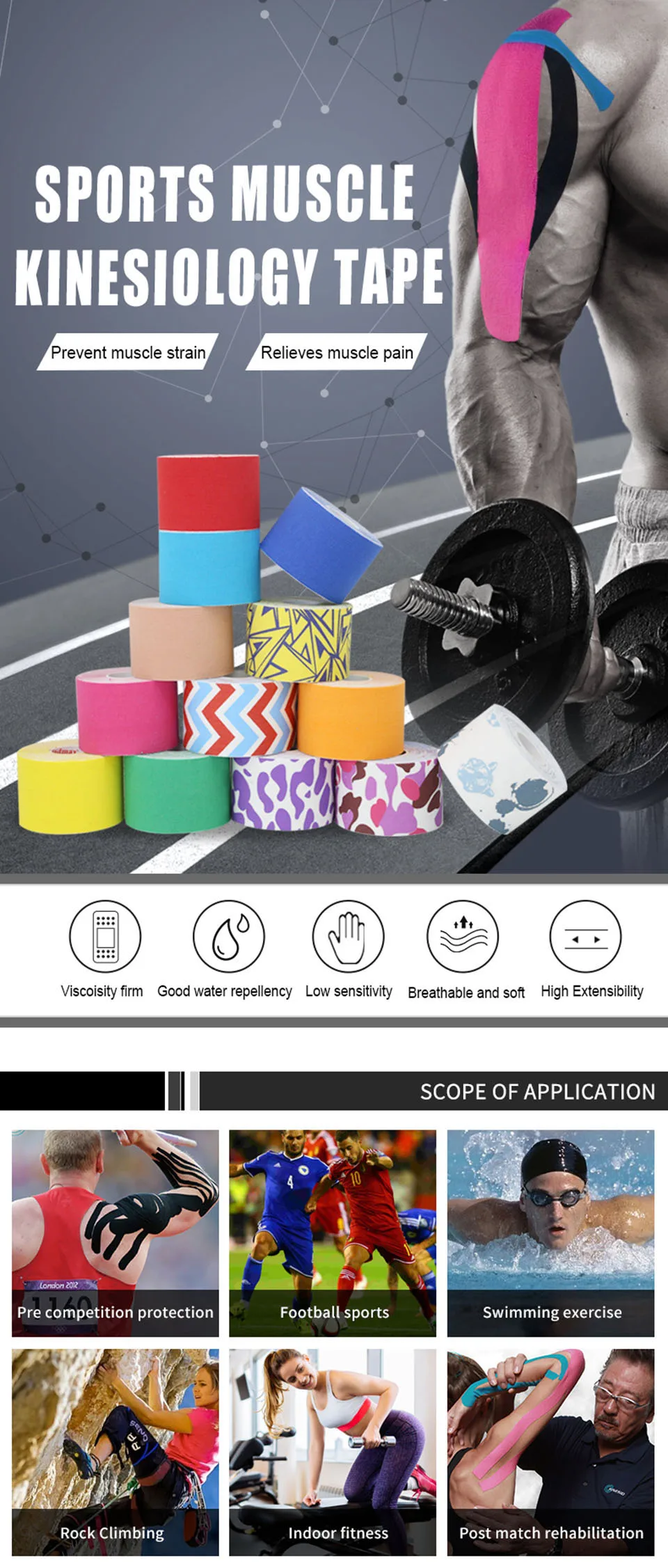Aolikes эластичная цветная спортивная лента для мышц с принтом 5 см 5 м хлопковая физиотерапия спортивный для футбола облегчение боли в суставах кинезиологическая лента