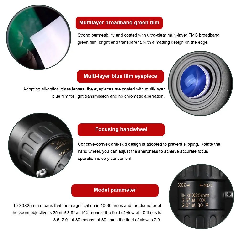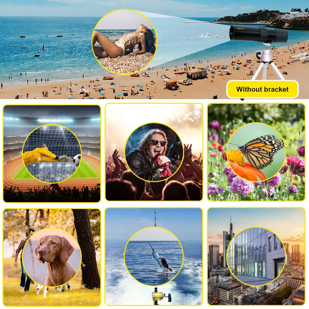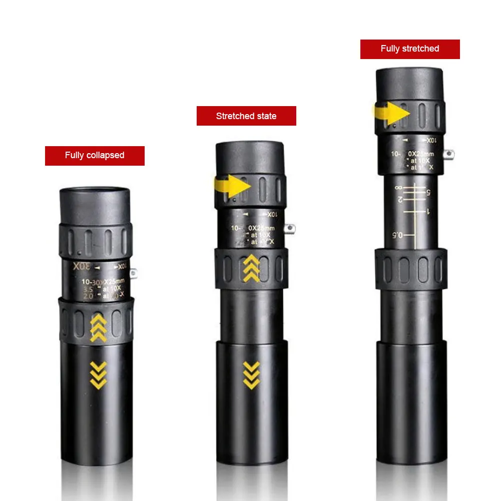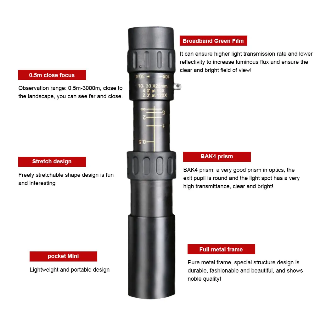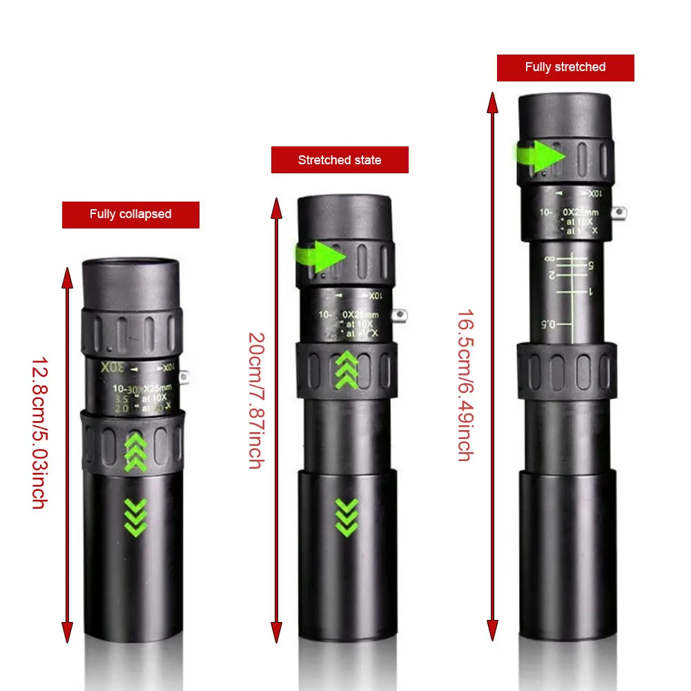 * 1,10-30x40 мощное увеличение. Улучшенное увеличение 10X до 30X, обеспечивает более широкую, более четкую и яркую сцену в ваших глазах. Отрегулируйте увеличение этого монокуляра зума в соответствии с вашими потребностями, это даст вам визуальную точность, чтобы увидеть чудесный мир.
