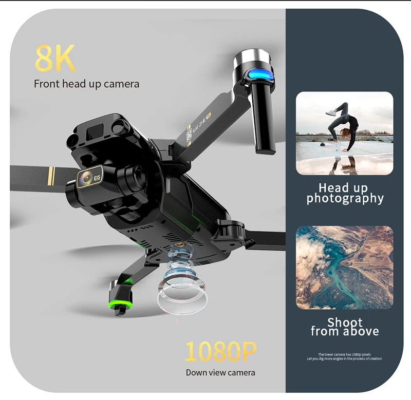 1. Двухосевая стабилизация: нажмите на изображения с инновационных углов с помощью этой двухосевой механической стабилизационной функции панорамирования мини-дрона.