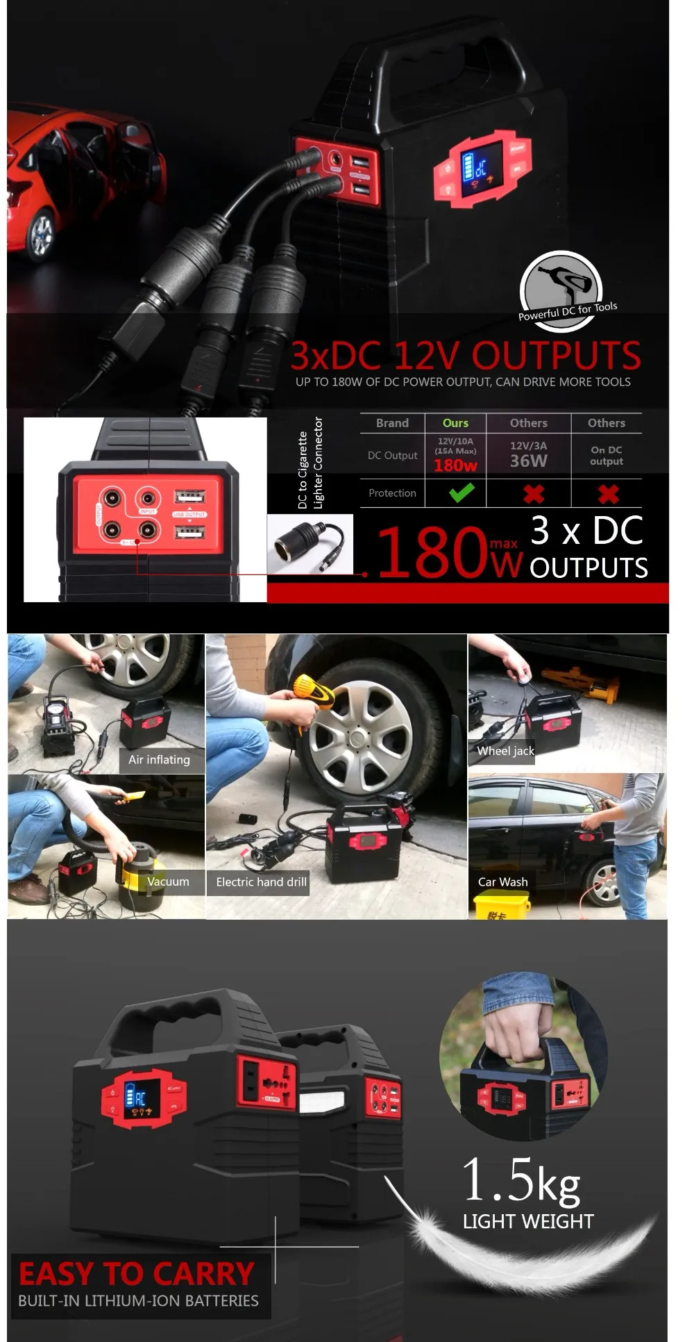1. Портативная электростанция с прочной ручкой, легко носить с собой и легко управлять, куда бы вы ни отправились. Прочная портативная мощность может подпитывать ваш iPhone, ноутбук и кемпинг, когда вы наслаждаетесь отдыхом на выходных или работаете дома 2. Для чрезвычайных ситуаций: Особенности разные режимы освещения-однотонной, SOS и мигает в чехол возникновения чрезвычайной ситуации в тех случаях, когда Отдых на природе в лесу или во время землетрясения или ураган сезона. 3. Заряжает дома, на ходу или в поле: используя бытовую розетку или в автомобиле или с солнечной панелью (панель не входит в комплект) 4. Экологичный Электрогенератор: уменьшает воздействие углекислого газа для более устойчивого образа жизни-отсутствие вредных паров, отсутствие грязного обслуживания, отсутствие шумового загрязнения-Бесшумный Генератор для дома и улицы 5. Безопасный источник питания для всех: безопасный для чувствительной электроники со встроенным устройством и защитой от батареи-защита от короткого замыкания, перегрузки и температуры продлевает срок службы батареи и защищает от повреждений