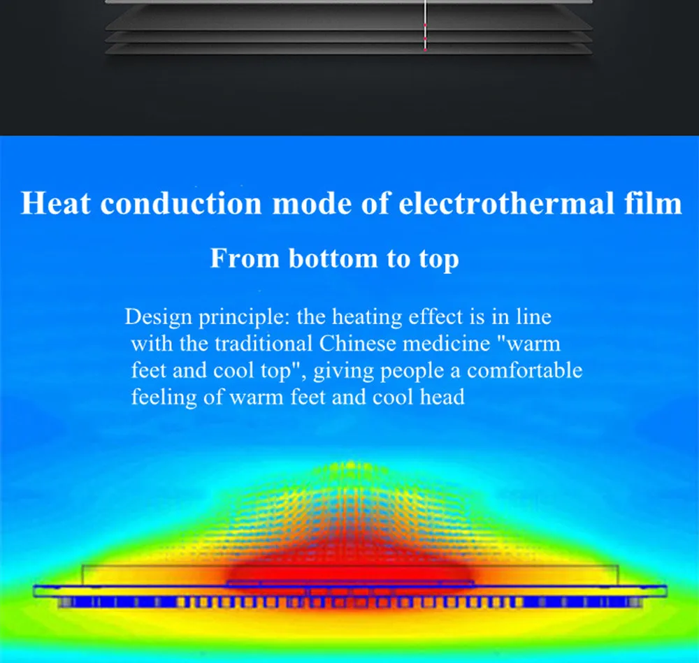 Нефтяные, Газовые Электрические нагреватели являются конвективным нагревательным типом через первичное отопление, но нагревательная пленка является методом лучистого нагрева, который излучает дальние инфракрасные лучи, нагретые из углепроводника, чтобы быть сверхэнергосберегающей системой отопления с отличной энергоэффективностью, Нагревает светильник и тонкую пленку, чтобы быть прикрепляемым к стенам, а также полу, и может свободно использовать пространство, чтобы быть новым материалом мечты. Это безопасная, полу-етемная система отопления, которая очищает воздух комнаты, обеспечивает приятный нагрев и разглаживает кровообращение, излучая много дальних инфракрасных лучей и анионов, используя только электричество, чистая энергия, не потребляя растворенного кислорода в помещении для конвекции и теплового излучения.