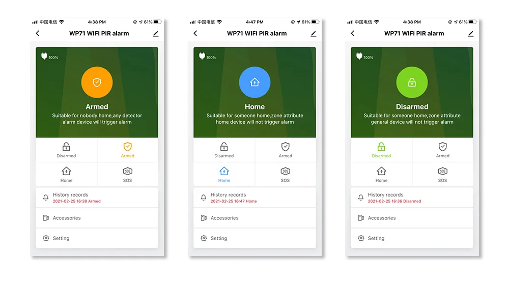 Someone enters the monitoring range of the detector and the detector is triggered. The host sends out an alarm warning, and at the same time dials the phone and sends a text message Tuya App background push notification.