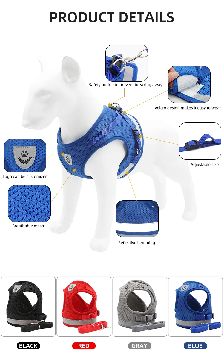 1. Мягкая и комфортная собачья шлейка с поводком-мягкая дышащая текстура без жестких краев или пряжек для раздражения кожи, уменьшения затягивания и натяжения на шею вашего питомца и комфортного отдыха вашего питомца.
