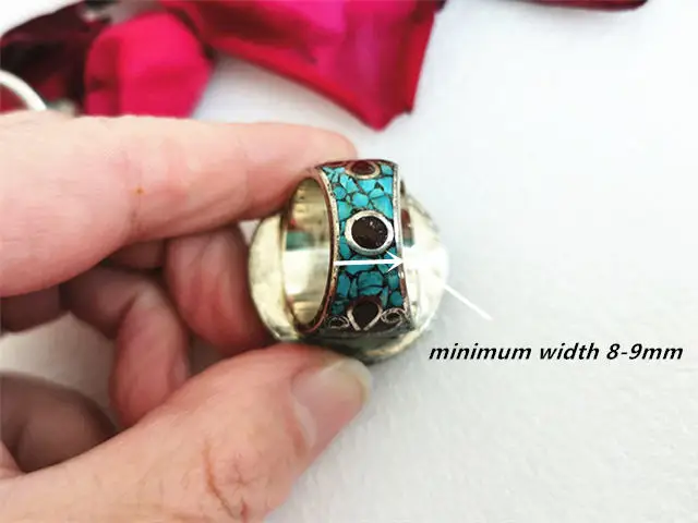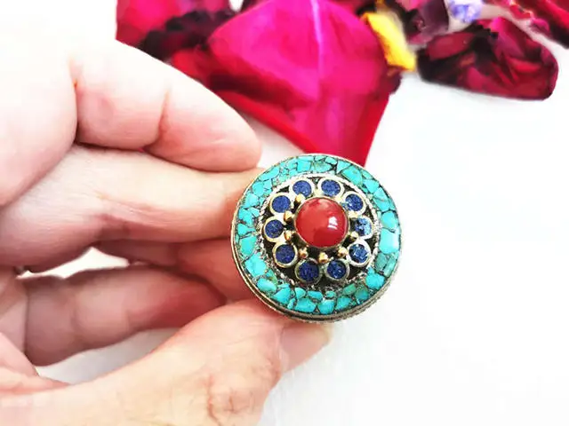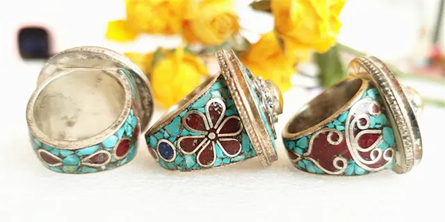 Непальские винтажные кольца для мужчин белый металл Медь инкрустированные камень большой цветок кольцо