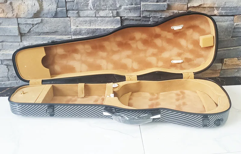 Чехол для скрипки изготовлен из импортного композитного углеродного волокна, с гладким внешним видом, лакированной отделкой и мягкой внутренней поверхностью. Он разработан в соответствии с формой скрипки для лучшей защиты скрипки. В то же время, есть ремни и ручки, которые можно носить на спине, с высокой прочностью и гарантированной защитой.