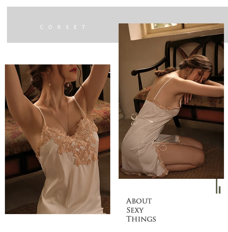 2021 сексуальные пижамы, Женская Летняя шелковая ночная рубашка с глубоким v-образным вырезом, юбка с тонкими лямками, нижнее белье, костюмы