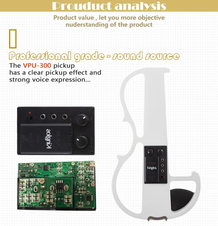 Благодаря запатентованной технологии окраски для определения местоположения и стыковки сетей пигмента и дерева Kinglos делает традиционные Электрические скрипки более красивыми и индивидуализированными Ручной резной твердый Еловый корпус с эбеновым грифом, Колышками и подбородком; Задний кусок из углеродного волокна с 4 съемными тонкими тюнерами Система приема: VPU-300 активный пикап, с тюнерами громкости и тона, гнездами линии, микрофоном и телефоном, ВКЛ-ВЫКЛ Питание от щелочной батареи 9 В (не входит в комплект). В комплект входит: чехол, бант, Кабель aux, наплечный ремень, дополнительный мост и набор завязок Вес изделия: 1,21 фунтов Размеры изделия: 23,23x8,27x3,35 дюйм (ов)