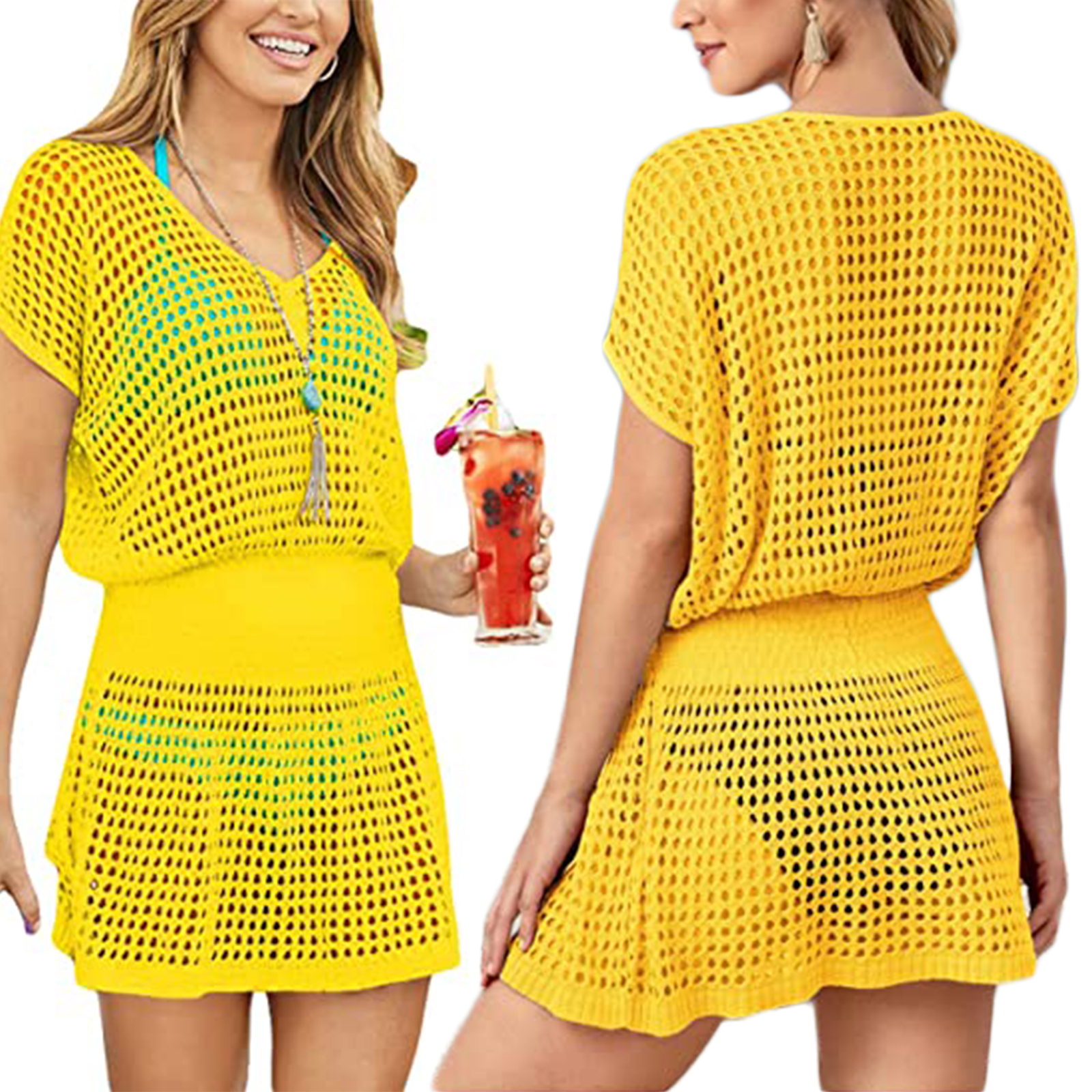 Женское сексуальное однотонное трикотажное открытое пляжное платье-бикини --- элегантный и тонкий облегающий пуловер с v-образным вырезом, короткое платье, со стильным вкусом, повседневное и освежающее, естественный и сексуальный модный стиль, это платье имеет своего рода растягивающийся и увеличивающий эффект, и это платье-ваш идеальный выбор.