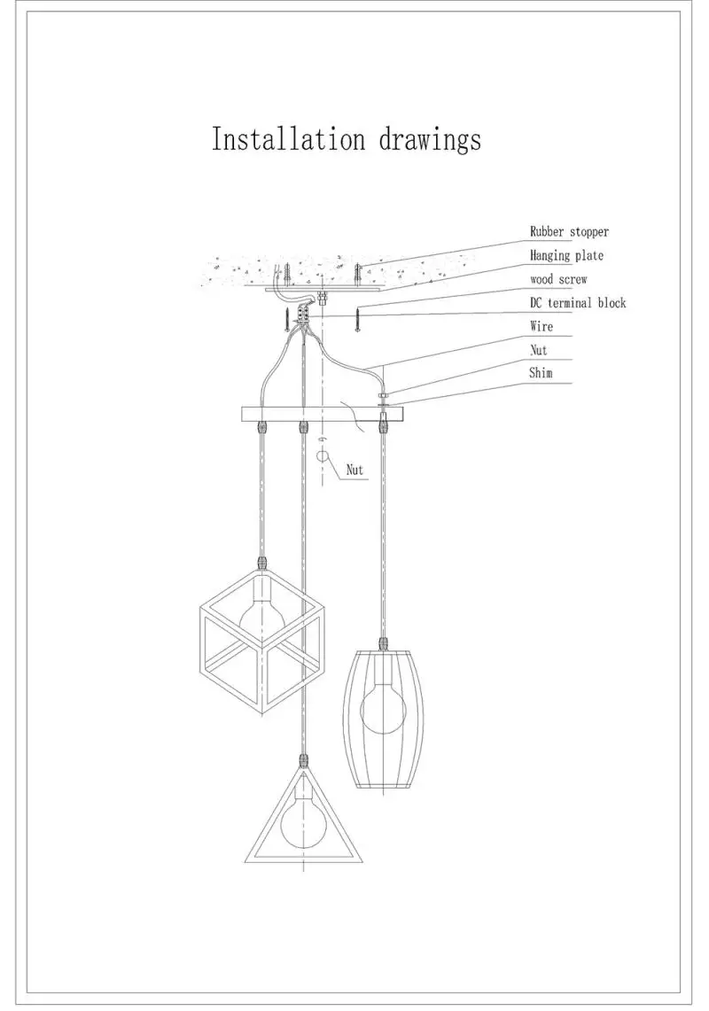 Подвесная лампа * 3 шт. длинная подставка для лампы * 1 шт. аксессуары для установки * 1 комплект