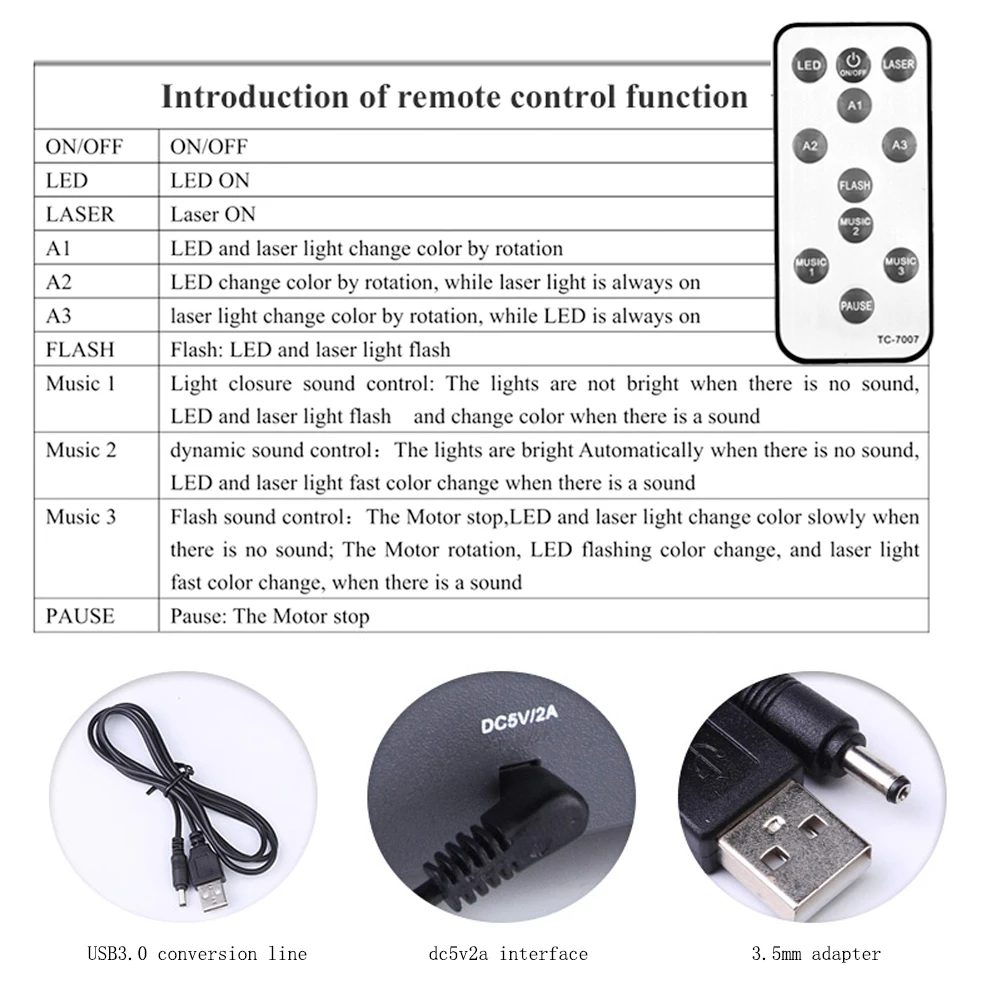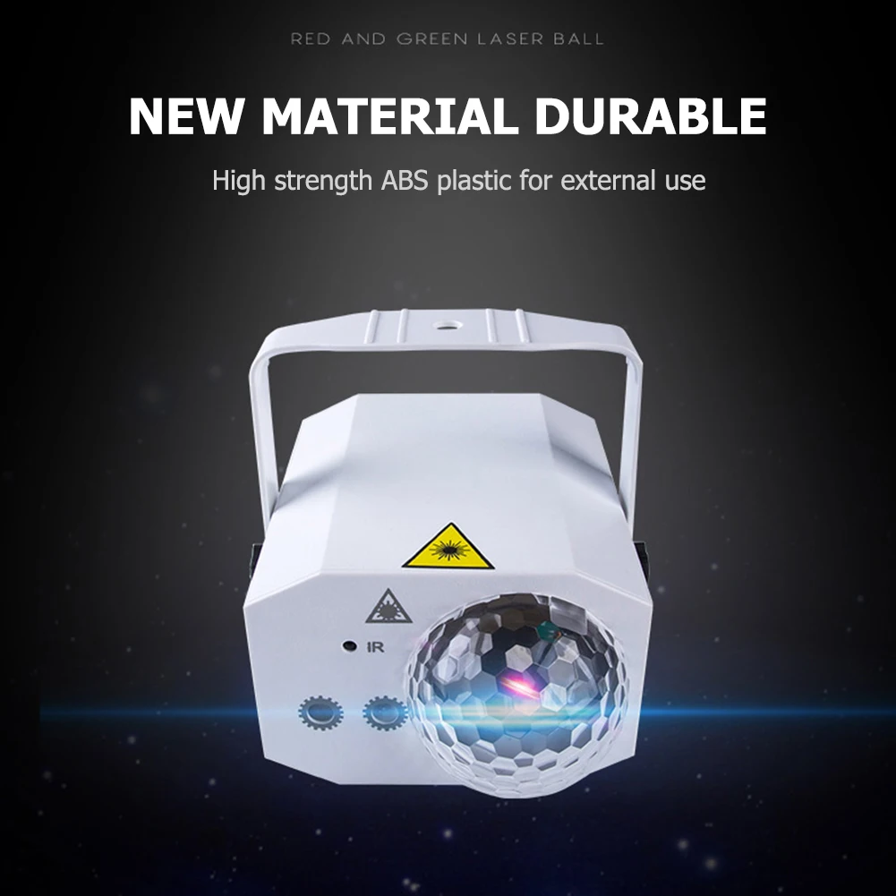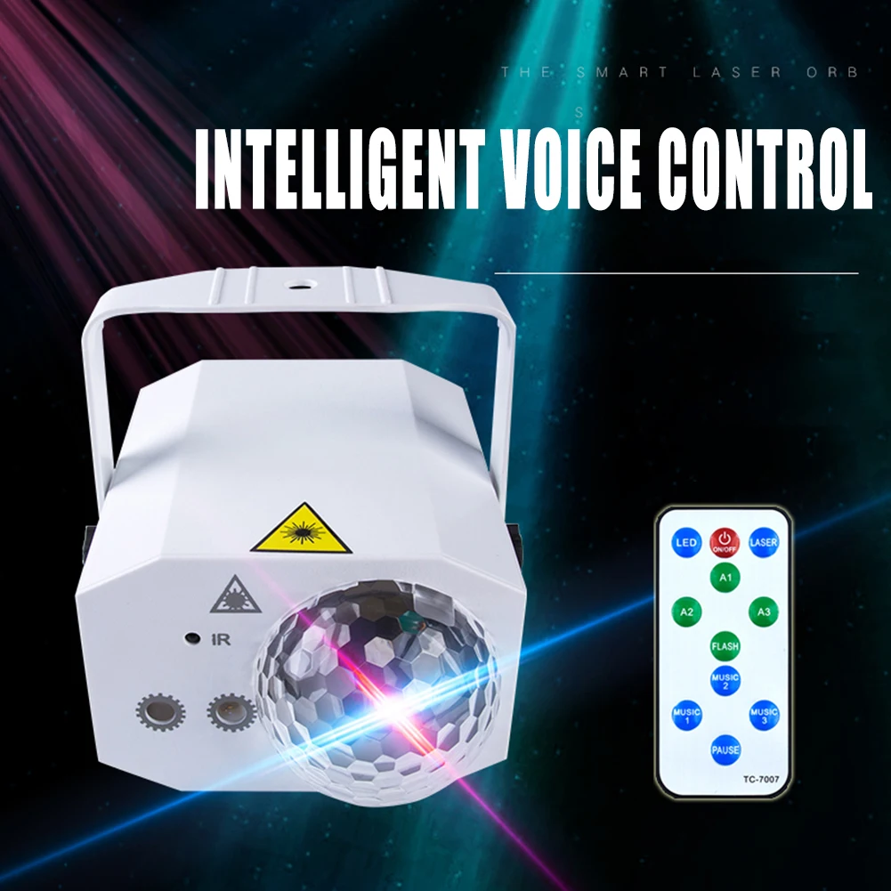С ослепительным лазерным узором и вращающимся светодиодным волшебным шариком, управление звуком является очень чувствительным и пульт дистанционного управления находится далеко.