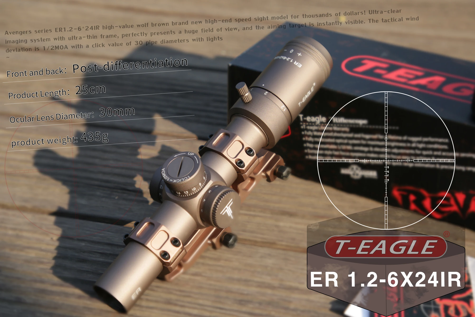 Teagle ER 1,2-6X24IR тактический оптический прицел снайперской винтовки Airsoft Air Guns red dot крепления зеленый красный прицел для охоты