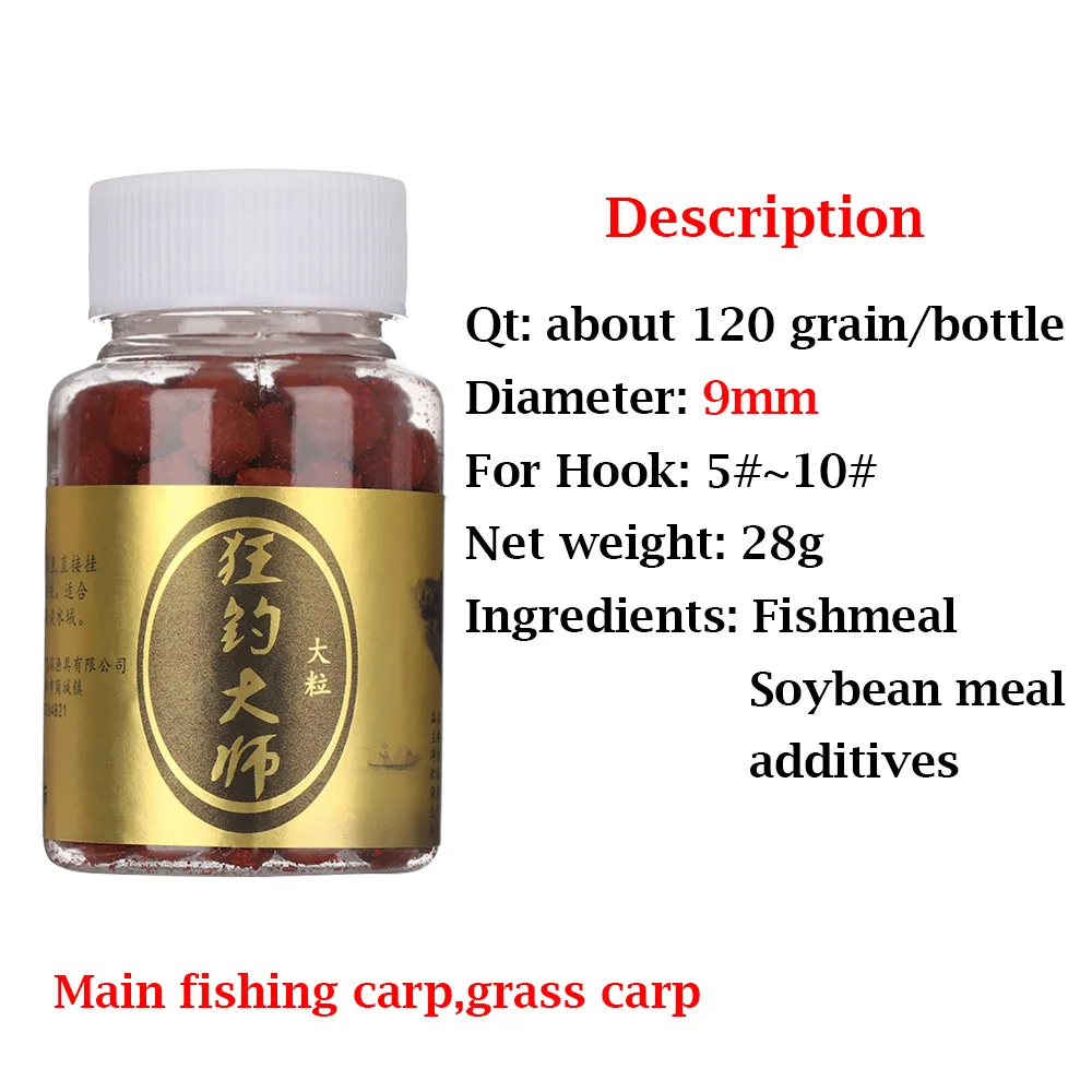 Количество: 120 шт/1 бутылка (крупные частицы) или 350 шт/1 бутылка (мелкие частицы) Изготовлен из ингредиентов, которые рыба любит есть, запах интенсивный и долговечный. Эта приманка может быстро притягивать рыбу, легко прикрепить к рыболовному крюку, практично и удобно. Диапазон использования: пресноводный Особенности: Простота в использовании, сильный запах, мягкие приманки Диаметр мелких частиц: 6 мм/0,24 "(прибл.) Большие частицы Диаметр: 9 мм/0,35 "(прибл.) Посылка включает в себя: 1 бутылка рыболовной приманки (120 шт/350 шт)