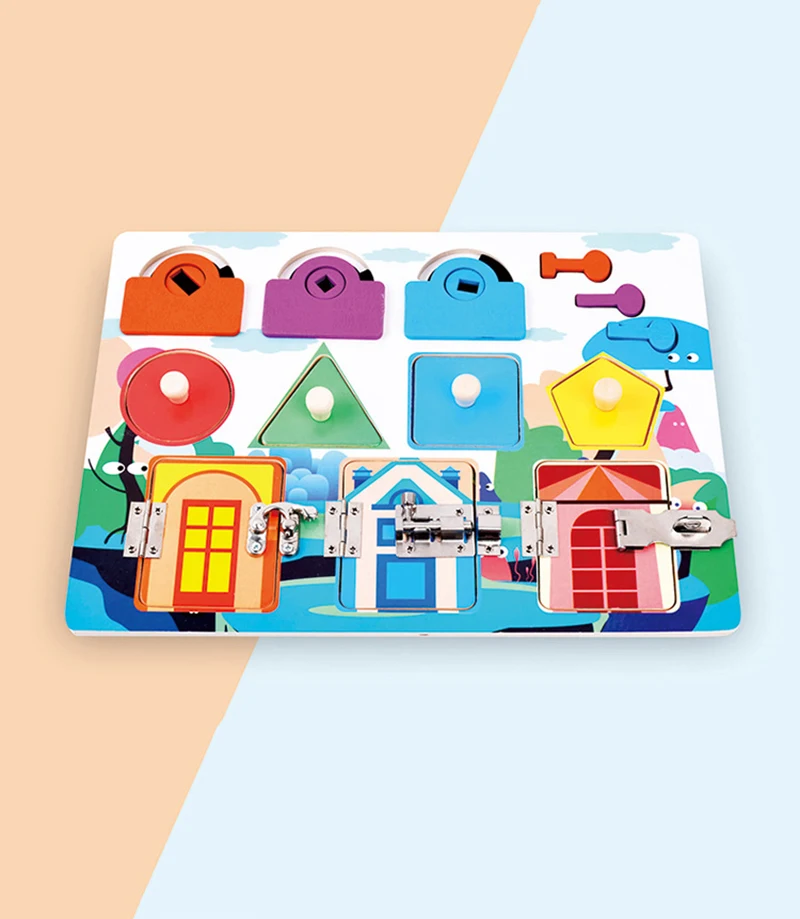 Доска для занятий разблокировкой для малышей, обучающая игрушка для раннего обучения, цветная форма, деревянная игрушка Монтессори, учебные пособия, обучающая доска