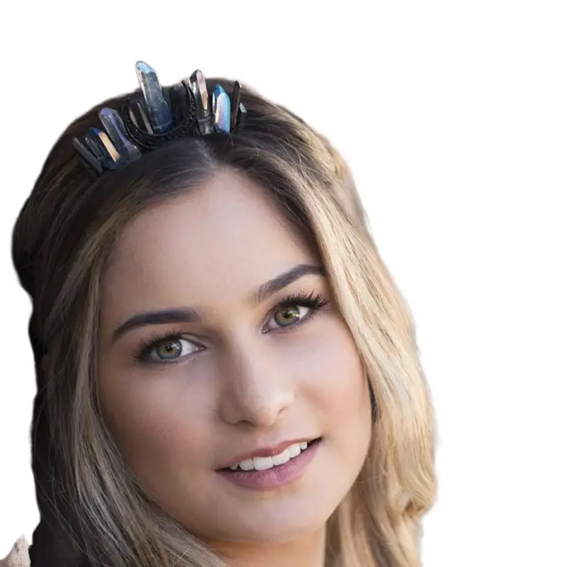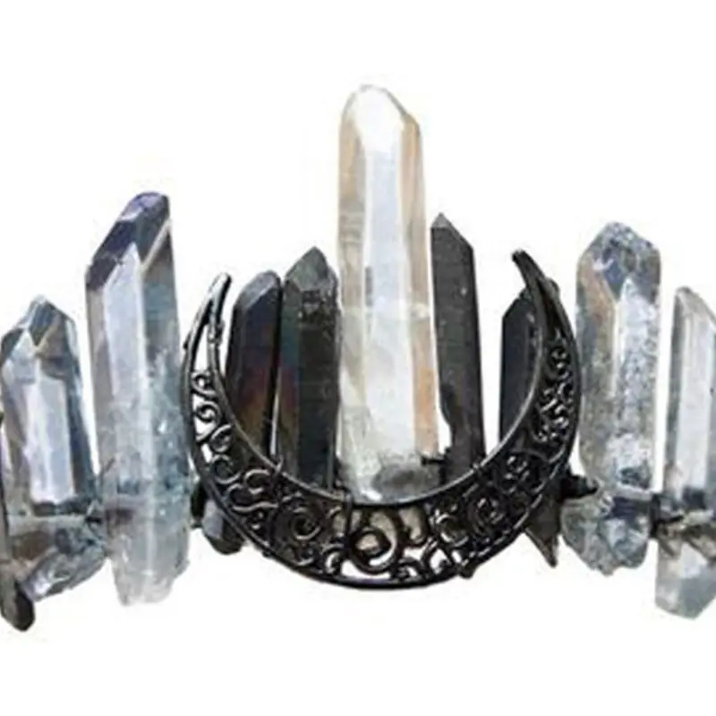 Ручная работа искусственный сырой Кристалл головная повязка контрастный цвет кварцевые черная луна свадебная тиара Корона Хэллоуин Ангел Аура обруч для волос