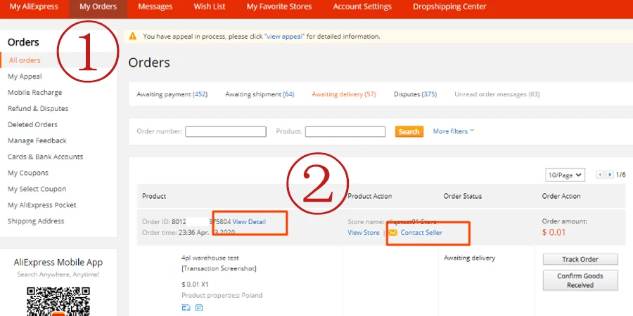 3. Если вы еще не подтвердили заказ, вы можете найти кнопку "открыть спор" на странице доставки.