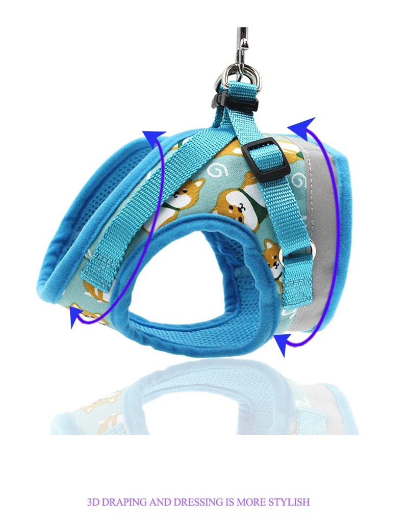 AbrloНовинкаМилый мультяшный поводок для собак светоотражающий нагрудный жилет для маленьких собак кошек Чихуахуа щенка поводок набор красный/синий/черный