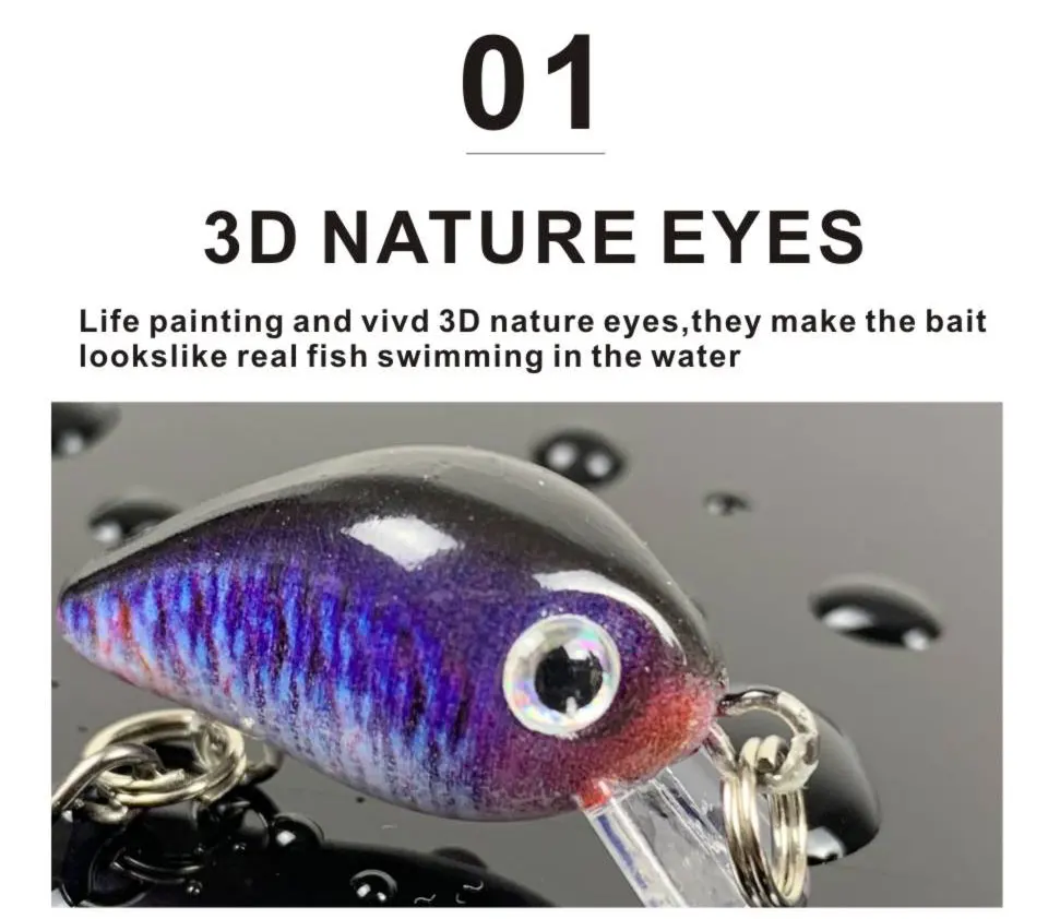 3. Новый Crankbait:3D реалистичные глаза, высокое разрешение деталей тела, 2 сильные и острые тройные Крючки.